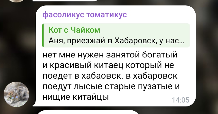 >>6285128 Неправда, у нее какой-то молодой шутливый владелец магазинчика. Она же ещё в последнем выпуске рассказала, что он ей дарит дурацкие шапки, не стал бы унылый Пушкин этим заниматься А Катя - более молодая копия Гришечкиной. Да и они вообще вечно будто друг другу замену пытаются найти, непонятно до сих пор, нахуя было расставаться. Может, гришечкина детей хочет, а шакулин чф, хз