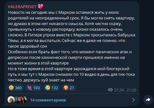 >>6286791 Позывной Блаженная Тиктокерша, растит ребенка Марка с каким-то серьезным заболеванием, муж от нее съебался или сдох, она нашла себе зумера, выставляла то какой он хороший отец Марку, знаменита рейджбайтами по типу "отдала вторую дочь бабушке и навещаю ее раз в год" хотя на видео была дочь подруги, недавно рассталась со соим зумером тк по ошибке подумала что он изменял ей, но мб это очередной байт был, ей сложно верить до конца