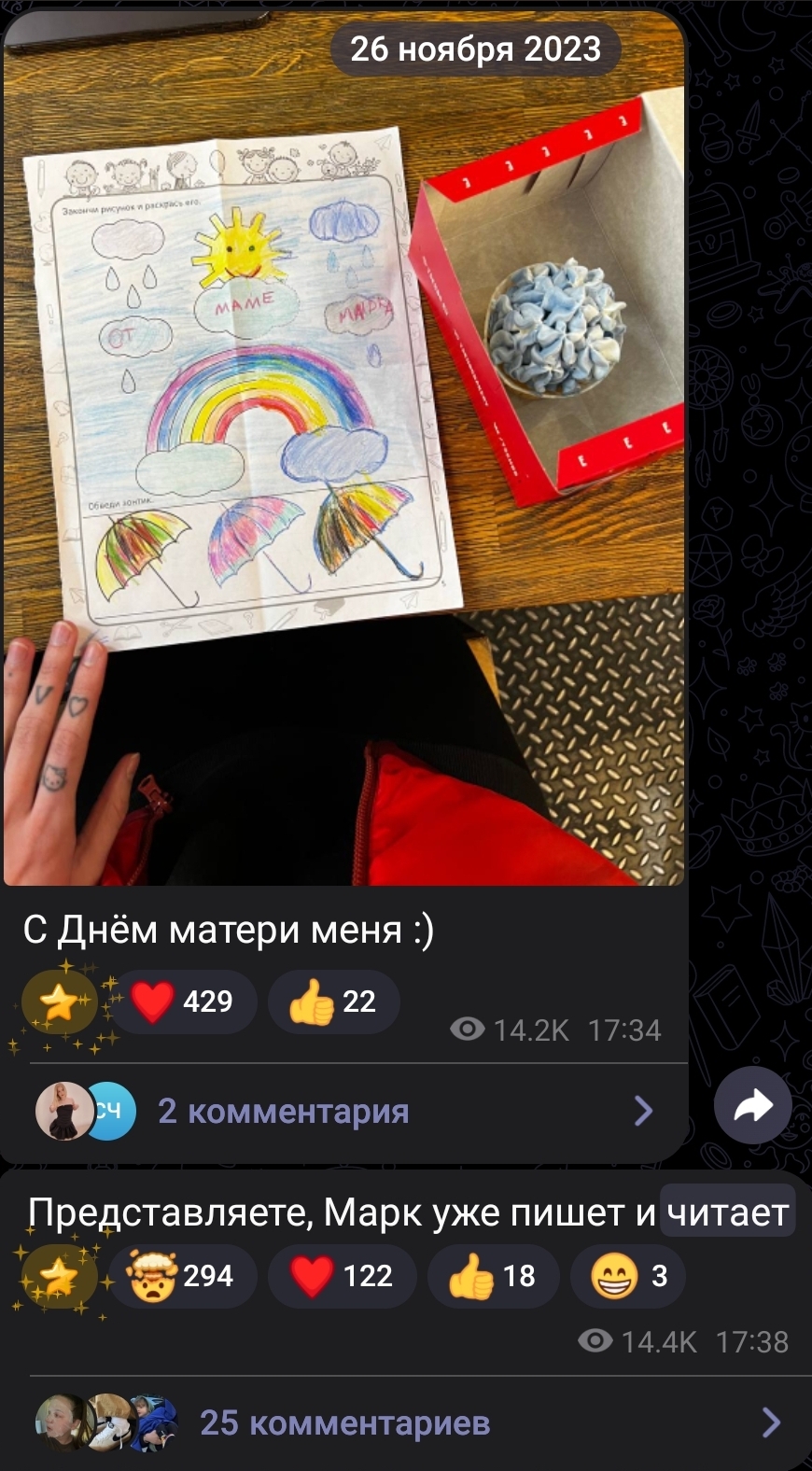 Ещё Марьяна говорила, что её мать тоже вышла за отца и родила ребёнка, когда ей 17 лет (?) было. Что-то такое. И типа для них это не было чем-то неправильным. Но потом всё равно бугуртили.
