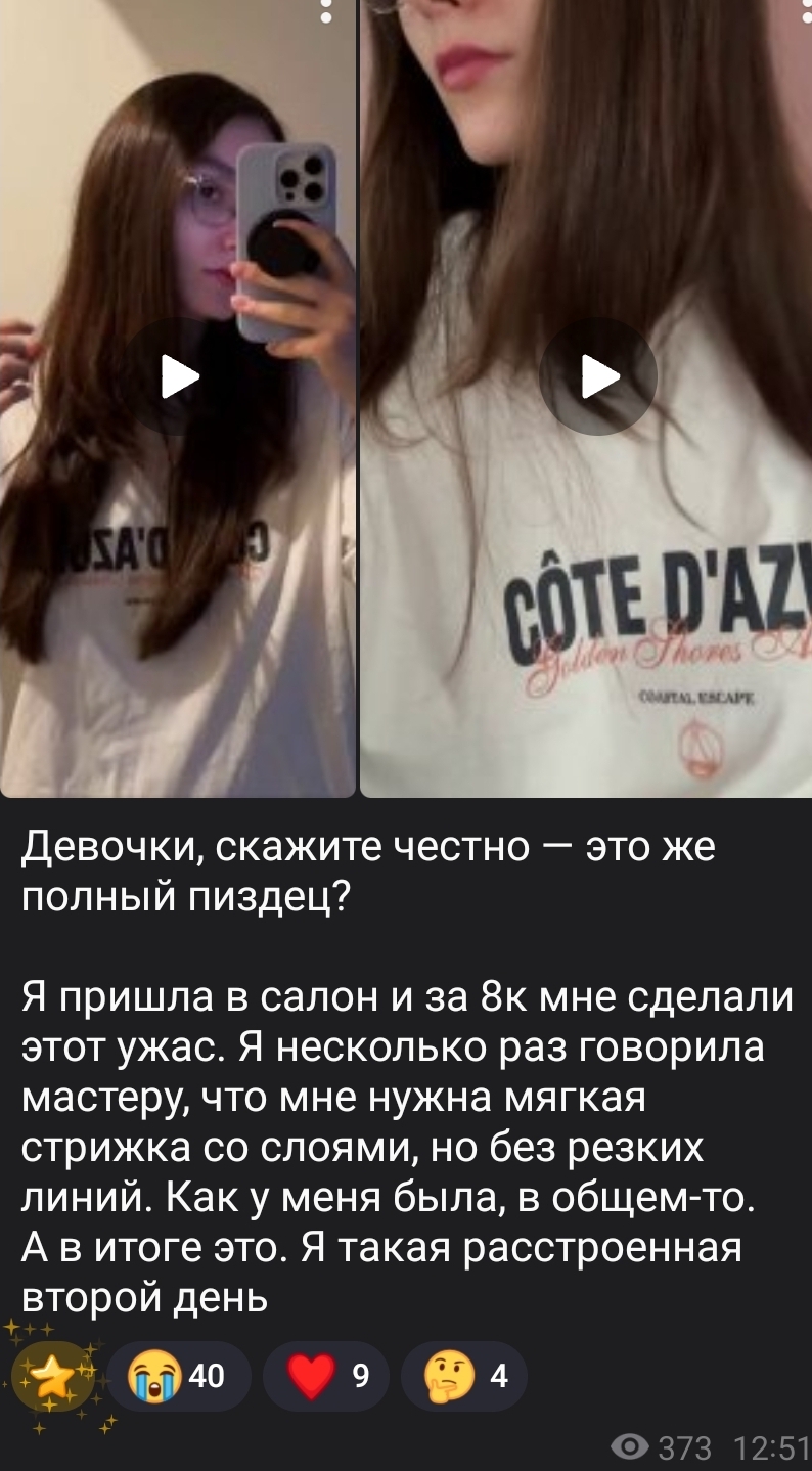 >>6286911 Ну это реально проклятье какое-то с парикмахерами, я когда просила резкие линии мне стригли мягкую хуйню с лесенками, отдельный кринж так как я их ненавижу но привыкла что раньше парикмахеры спрашивали делать ли лесенку, а теперь они по дефолту ее хуячат.