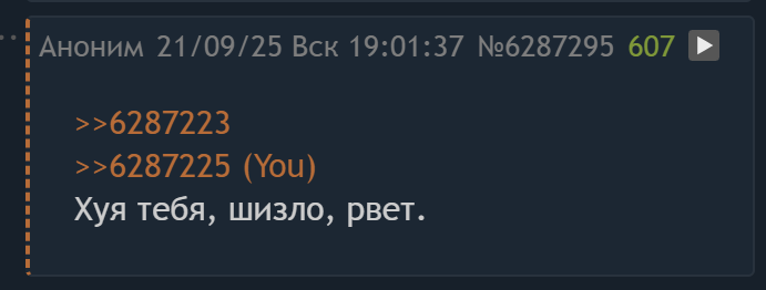 >>6287074 Ну здесь пасется агрошиза, например, которая в целом неадекватна и постоянно кидается на сис. Но она вроде не может в написание постов длиннее - пук-срень, сарайницы, тебе отчим насиловал. Хотя может и она это пишет.