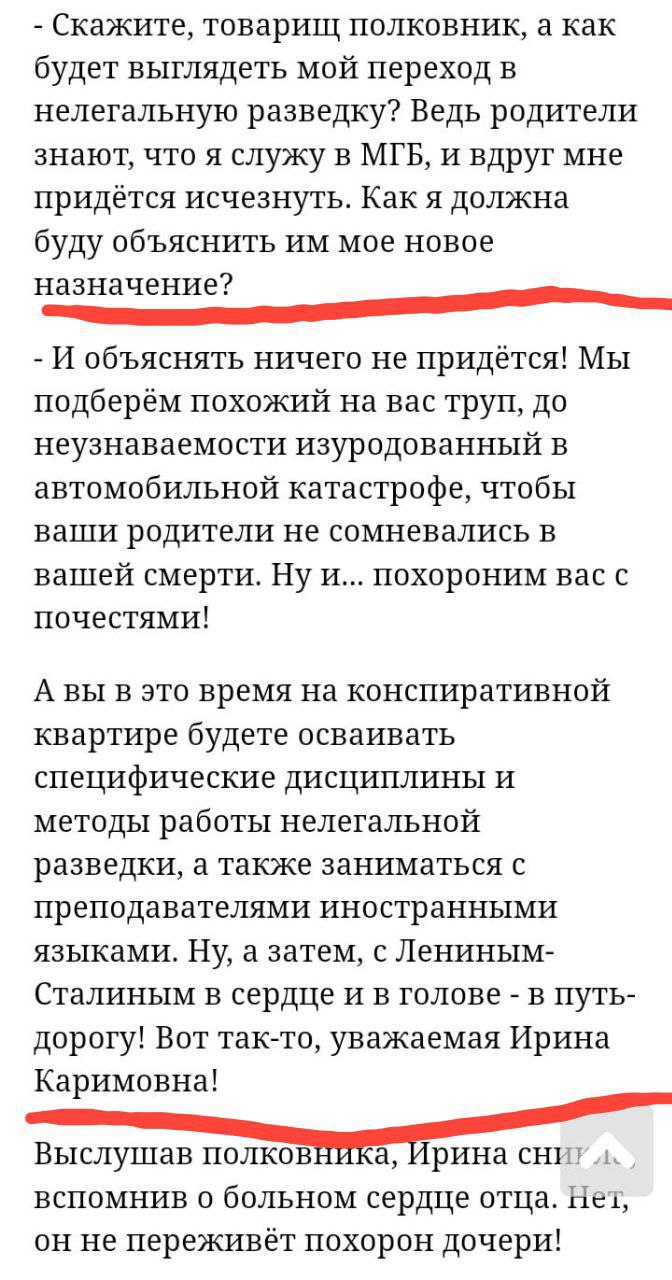 >>6292145 да, тоже прям бросился в глаза отчаянный коупинг,я верю что она может быть жива, но уж точно не завербовали ее в агенты, она наверняка была обычной глупой девочкой как и все, чтобы шпионом стать это надо быть человеком прям выдающимся, сигмой