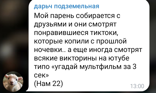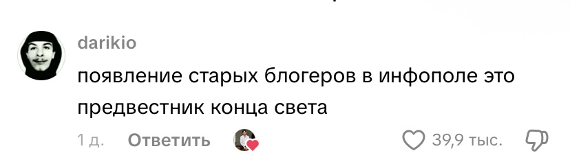 У Анастасии Денисенко ролик про травлю вышел. Всех медийных из десятых собрала. Насть, если читаешь, то привет, спасибо за видео, я как в чан с сама знаешь чем нырнула, глаза мои б не видели половину этих блогеров прошлого. Даже тогда были неинтересны как контент, но из-за тянача знаю всё про всех.