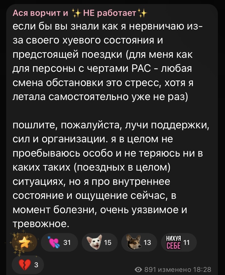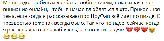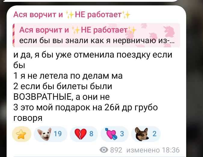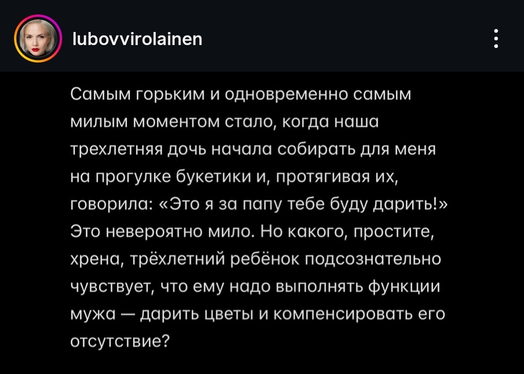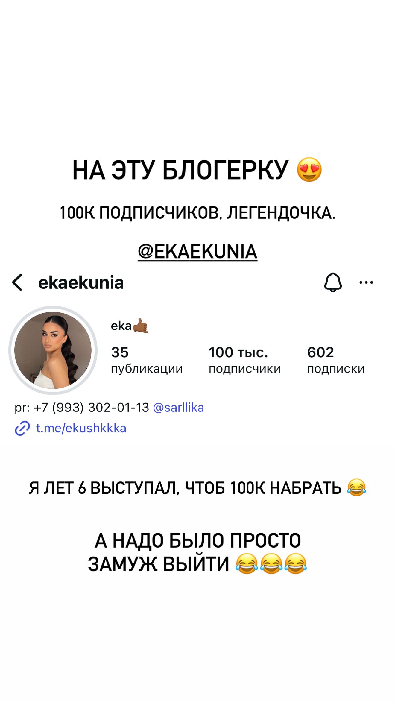 Кто-нибудь смотрел? Если вкратце, история о том, как девочка вышла замуж за очевидно еблана (они вместе употребляли), пошла работать в вебкам, чтобы налутать деняк им на съем просторной квартиры (у неё была своя квартира-студия от родителей, но вдвоем с мужем там было тесновато) По классике, завела собаку, не справилась и отдала её Потом влюбилась в другого еблана, который работал там же в вебкаме ее менеджером или оператором, хз как у них это называется. (Он был на тот момент в браке, но у них были открытые отношения). Изменяла мужу с этим коллегой, потом спалила мужа на измене и со спокойной совестью вышла замуж за этого коллегу и щас коупит, что он самый лучший мужчина и хочет от него много детей. В комментариях прошаренные женщины тонко ей намекают, что к новому мужу нужно присмотреться повнимательнее, перед тем как рожать, типа имеет место идеализация, но она по классике парирует аргументами типа «вы знаете только то что я посчитала нужным рассказать».
