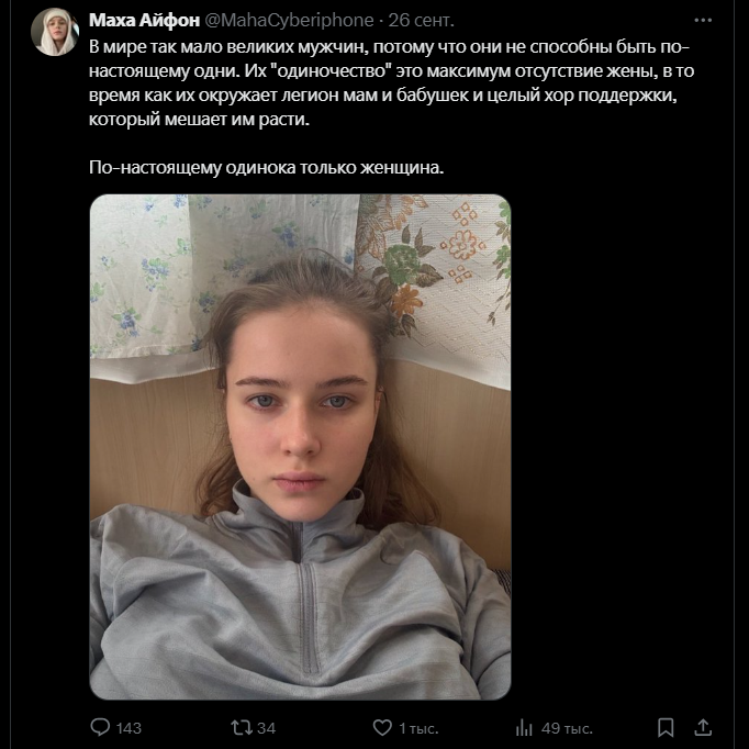 >>6296535 У меня нет "тик-тока", никогда не было, если кому будет не лень затащить сюда свекобрушку возможную, то несите её контент про сына и как он выглядит, мне не особо хочется усилия прилагать для подобных мутных подводных темок. Достаточно на паре сайтов зарегистрироваться и переехать как невеста и будущая мать в те же Исландию, Японию и где там ещё демографическая яма и невест прямо ждут на самых лучших условиях, и всё прозрачно, а не как эта женщина рисует про квартиру. На моих условиях я хочу квартиру или дом.