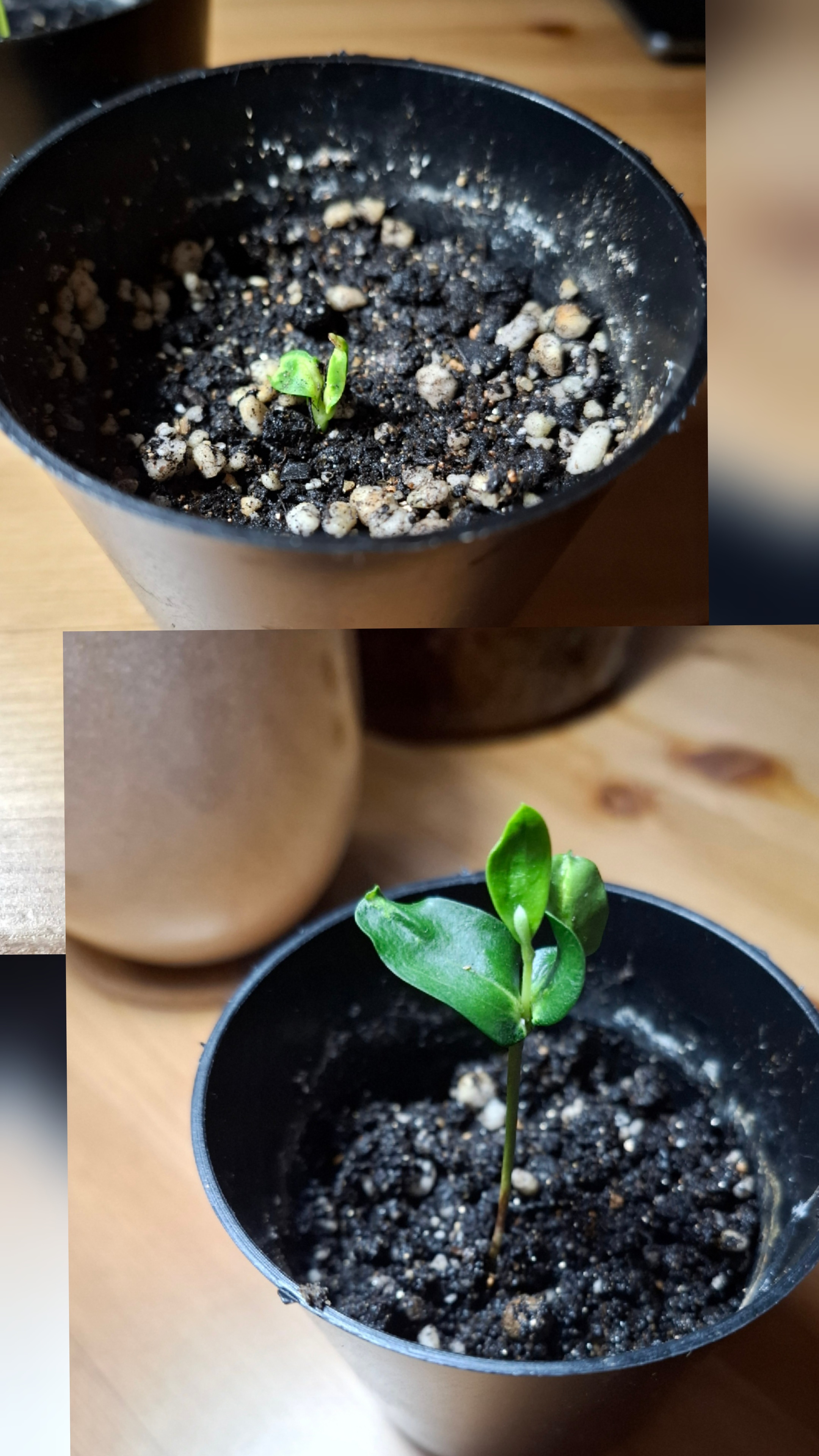 Я сегодня уезжаю до 11 числа, и сегодня я увидела, что у меня проклюнулась оливка! Которая тусила в горшке несколько месяцев, прежде чем ожить... Блин, малышка, как её не загубить сухостью теперь...