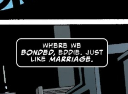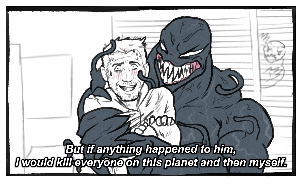 >>6300532 Ага. Эдди Брок зовёт Венома своим любимым, а Веном рассказывает, что они с Эдди женаты за пределами человеческого понимания. А их сына зовут Дилан.