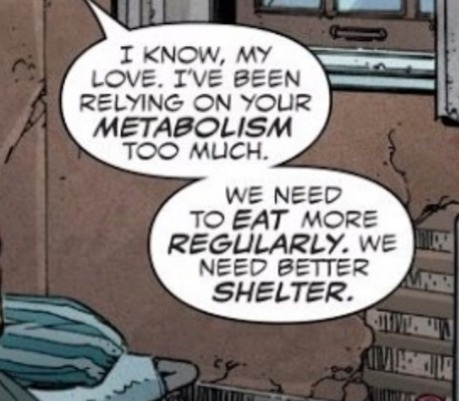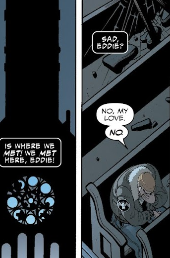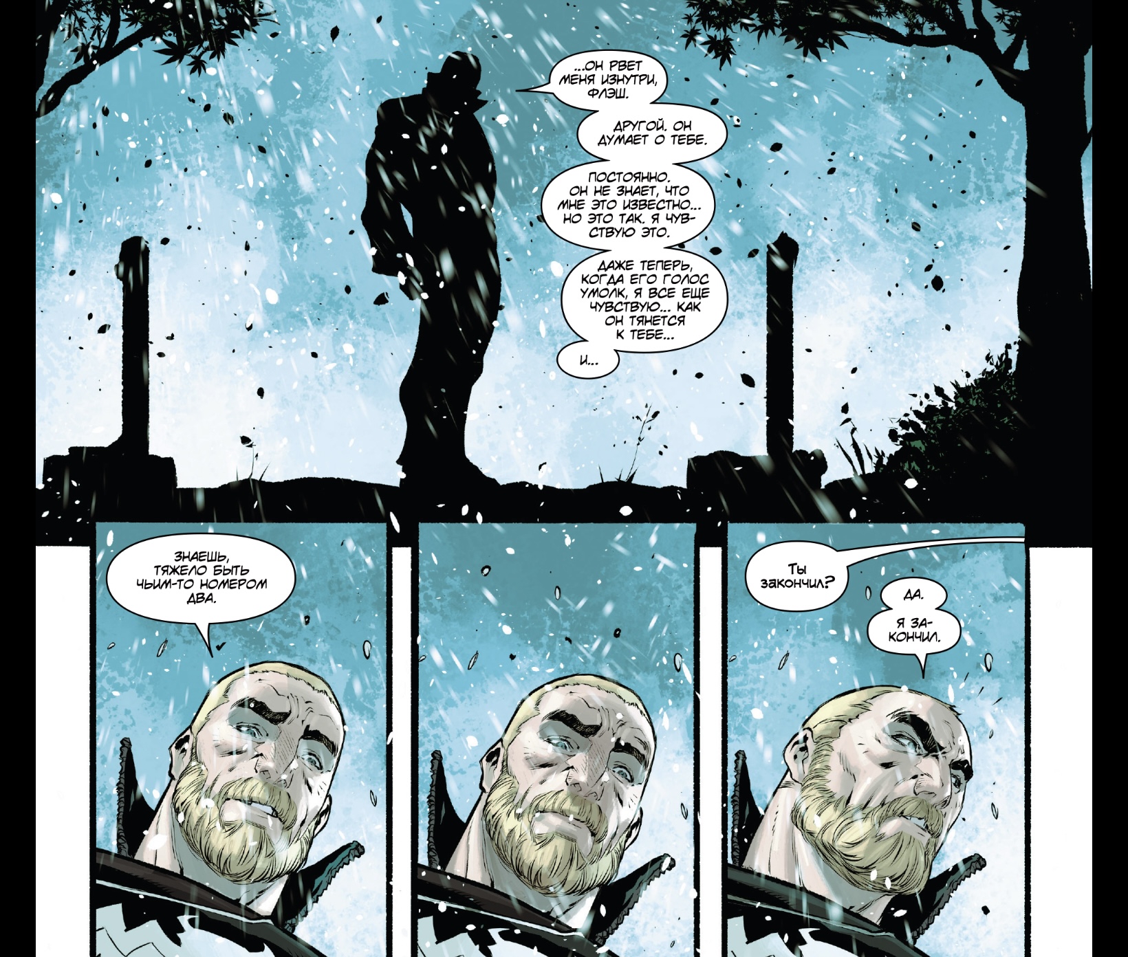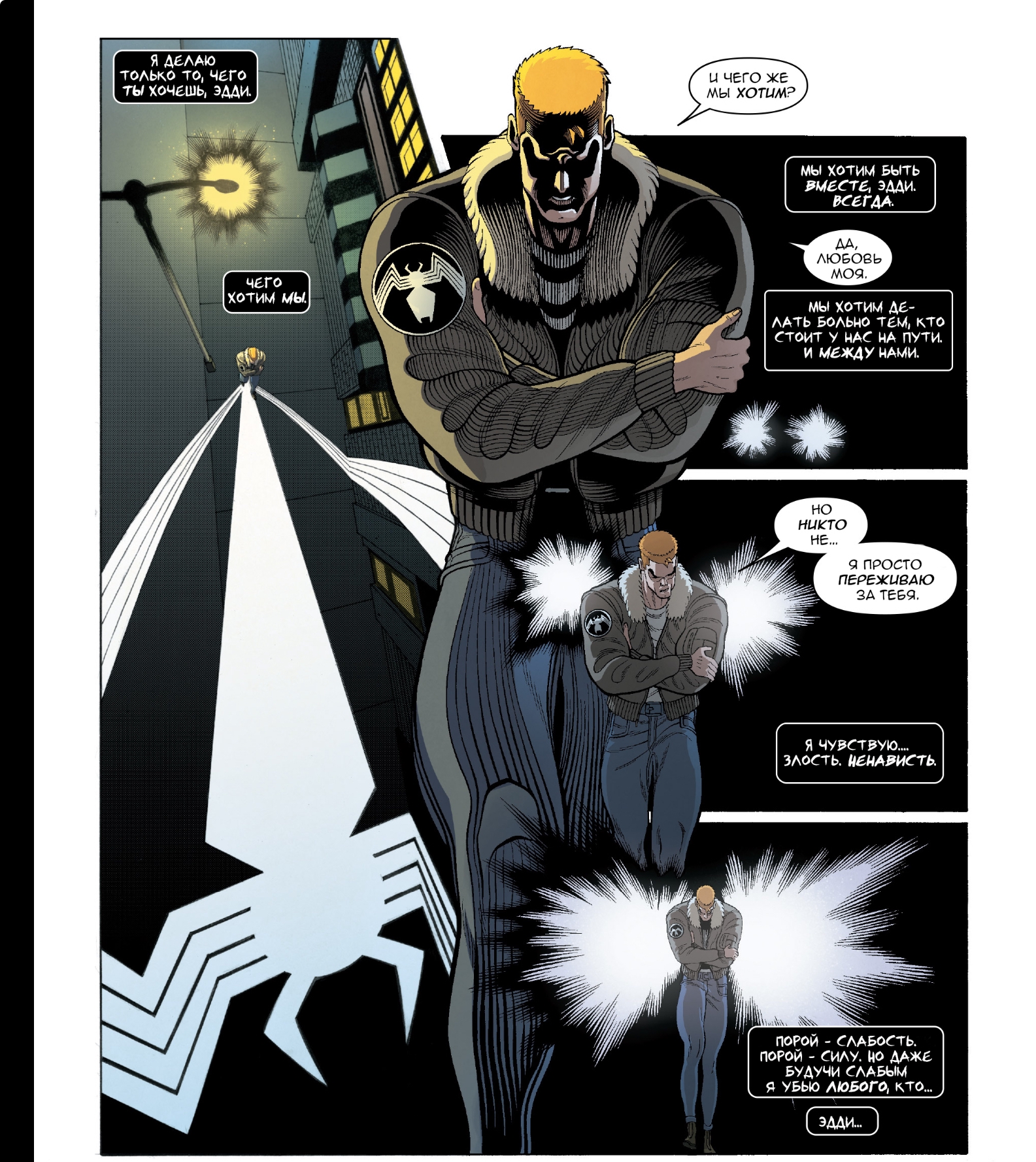 Я решила почитать нового венома, посмотреть что там за сын. Начало мне очень понравилось, сами посмотрите. Я после фреймов, которые выше постили, надеялась максимум на пару фраз «я люблю тебя» на эпичном развороте в разгаре битвы, но он здесь натурально горюет по супругу. Они вообще спокойно говорят я люблю тебя, заботятся друг о друге, никакого надрыва в этих признаниях давно нет