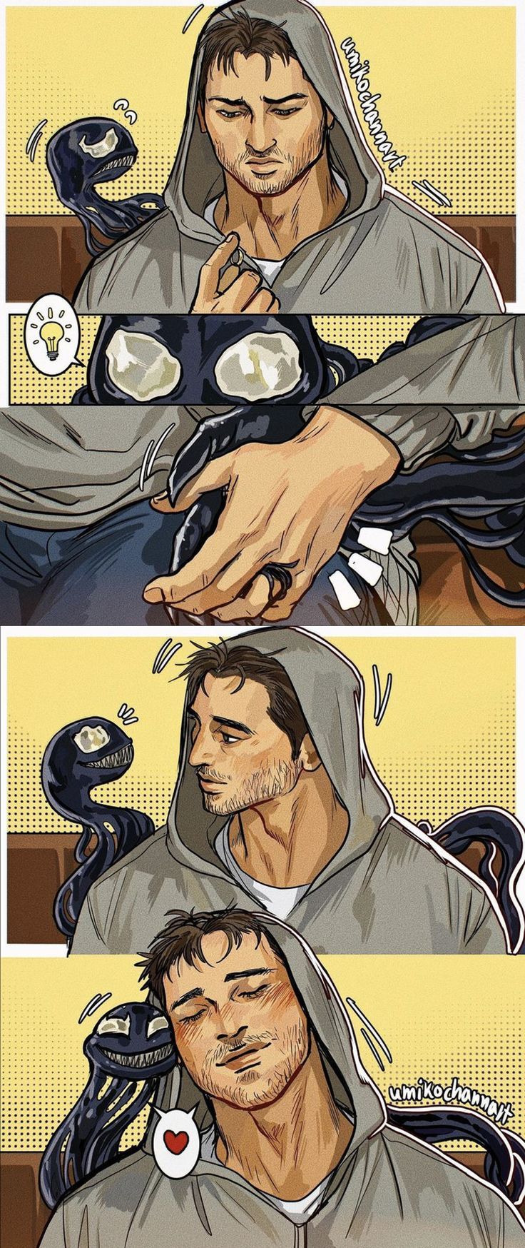 >>6302311 Там была мрачная часть (первые 2 пика как раз оттуда), где эдди возвращается в дом к своему абьюзивному отцу, чтобы поговорить и пока тот орёт на него на крыльце, он видит дилана, который обращается к отцу эдди "отец". В итоге веном нападает на отца веном там сильно деграднул, не может говорить, не имеет сознания, просто агрессивен ко всем, кто нападает на эдди, но это не навсегда. И эдди сбегает, тк не может контроллировать венома. Ему негде жить, он бомжует с веномом в переулках. Его сын находит его, думает они братья и просит помочь убить их "отца" Вот здесь я была очень вовлечена, как бы было ахуенно, если бы вместо ебучих глобальных событий, где они просто дерутся с другими героями, здесь бы притормозили и показали бы реабилитацию венома, как они всей семьей становятся на ноги, как пездюк начинает им доверять, как веном избавляется от паранойи к Дилану, как эдди справляется с этим, пока веном не может его поддерживать как раньше Мне нужен такой фанфик, но я видела сколько там фанфиков, дай бог там порно есть, о макси я не мечтаю