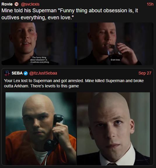 >>6300235 Все геройско-злодейские шипы по этой колее ездят, разве нет. Вот кто из бэтгарема не лох, даже инджастис-Супермен лох потому что Джокер важнее чем он. Но Джокер тоже лох