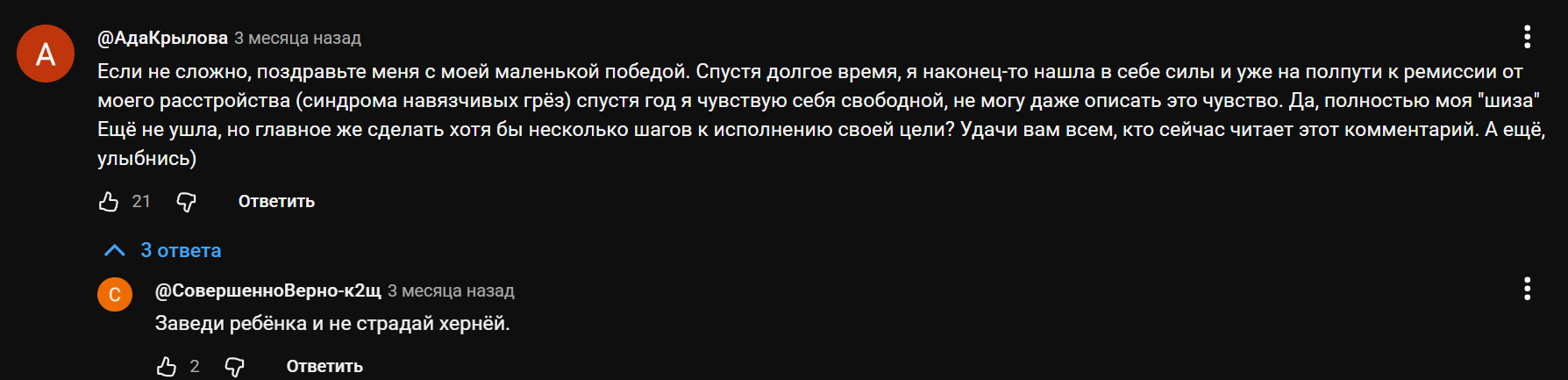 Хз, что это было, читала что так крышак может поехать от постоянного стресса от работы и переработок....по-хорошему надо было обратиться тогда к психиатру за колесами и не увольняться. Уже два года вялое РНН, веры в себя особо нет, но и дриммлю редко и эпизодически, только когда какого нибудь хасу в тредике зафорсят...
