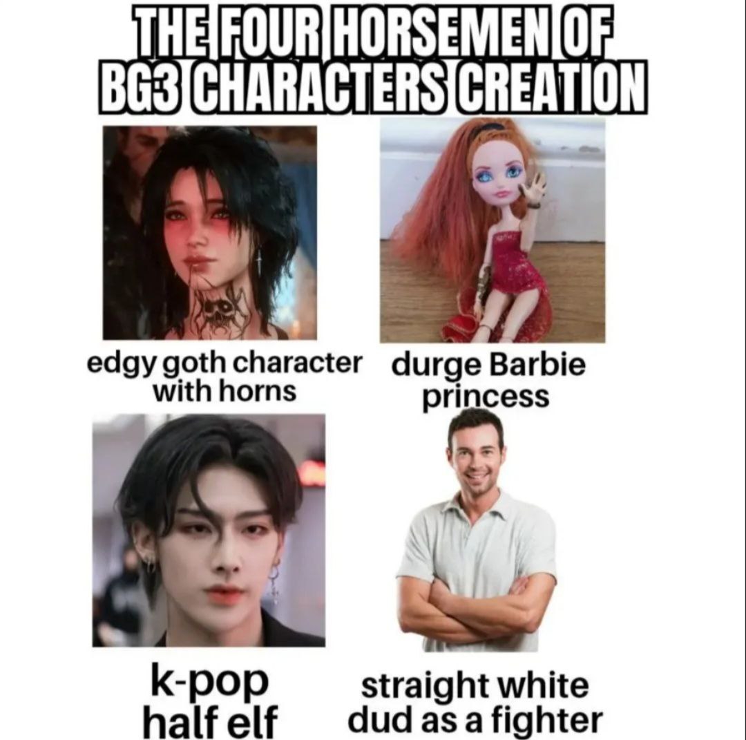 >>6318662 Ну я потому себя делать не стала и оставила Стейсиписю как есть. Кто-то с ней именно в таком виде фанарты и рисует, лол. Только у Тав на пике глаза красные, полагаю тут она вампир. Знаю что Астарион в этих комиксах фигурирует как бывший >>6318678 >да я закуколдила кровосисю медведем Сам виноват, видимо где-то не угодил. Если он мудромужественный то закроет глаза на похождения жены и подумает как стать лучше