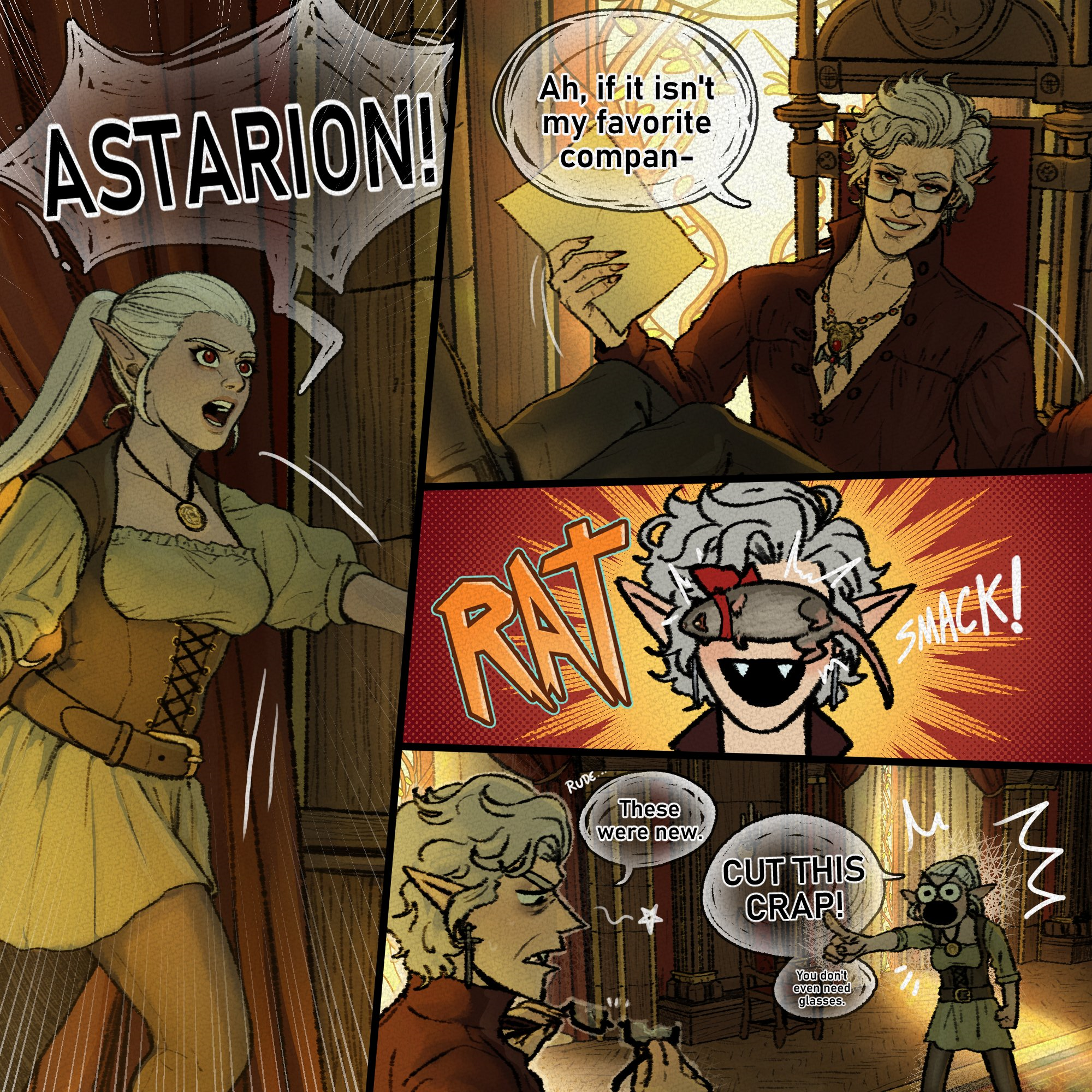 – Ни слова про сексуальную травму или то, что охотников принуждали спать с жертвами. Астарион заманивал дурачков во дворец, обещая им пир.