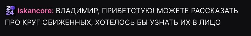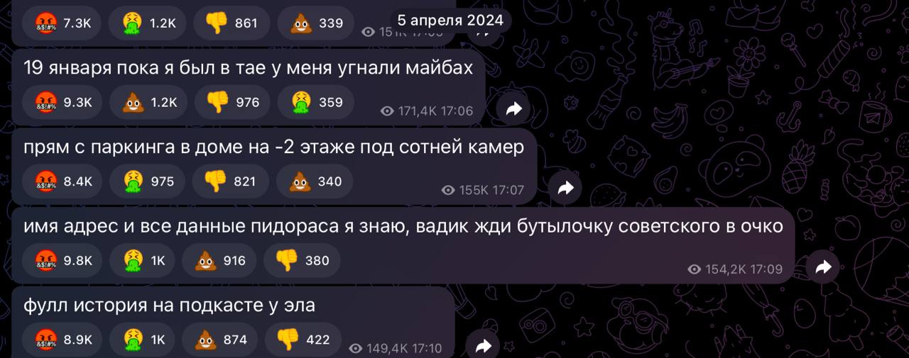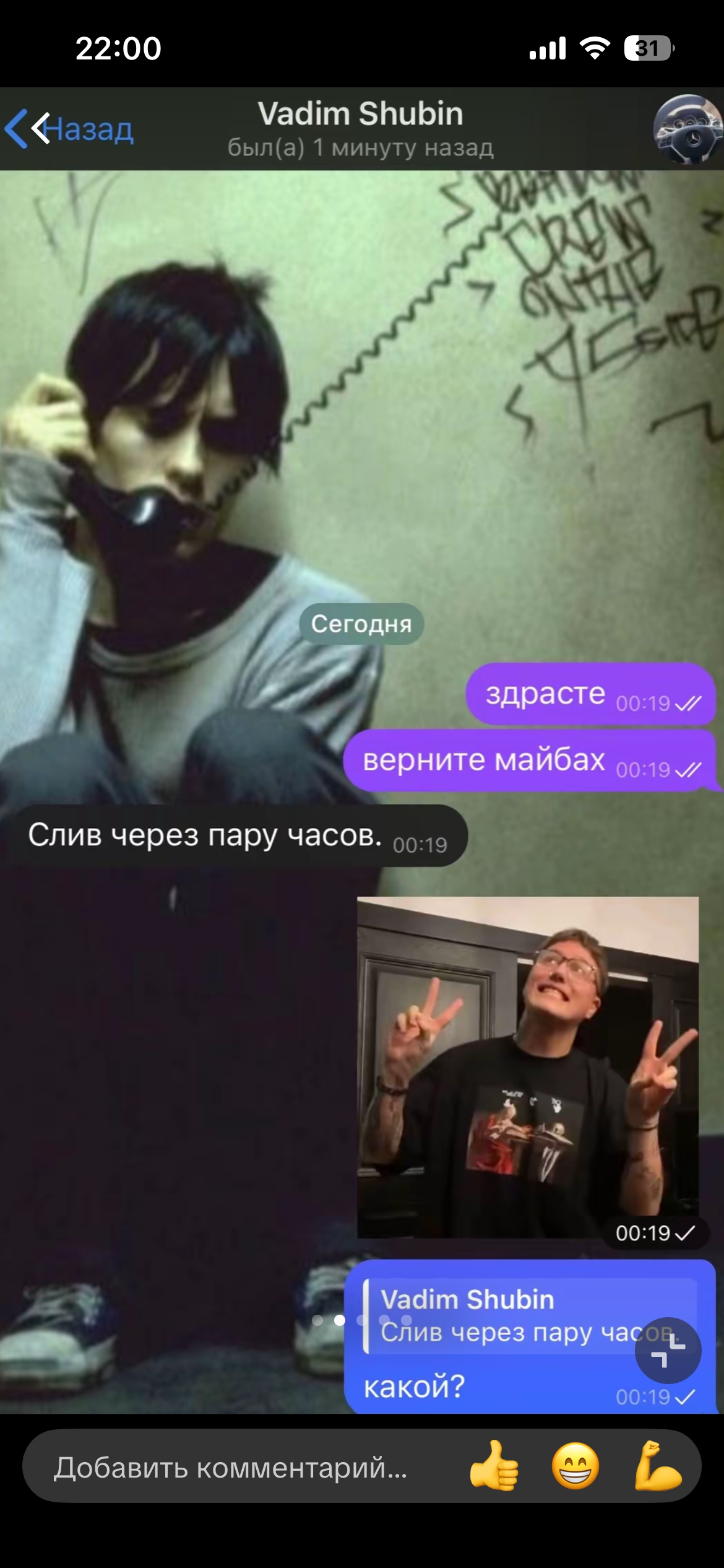 >>6320723 — "Видел историю с твоим бывшим менеджером?" нет, не видел, с каким? "Шубин Вадим" а, этот который тачку у Тушенцова украл, а че там, он накосячил опять? "Паспорт слил, номер слил" Тушенцов паспорта сливает..? "И адрес ещё!" адрес родителей? Че за хуйня? "Там адрес, юз, номер его и его матери" Пиздец.. Честно, не знаю, должна ли мать отвечать за поступки её сына.. Ну у Шубина крутая мать, она директор в одной школе. Я с ней пересекался разок, у меня есть история как я накосячил! Короче, я снимал ролик про Фэйса, и там такой сюжет, что продюсер Фэйса пробил ему концерт в школе, и мы пришли снимать сценку в эту школу, а это была школа где директор - мать Шубина! Я по факту сам накосячил, но мне так влетело пиздец. Родители увидели, что в школе там матюки снимали и в некой ярости были.. Но в итоге все хорошо обошлось, ролик я не удалил принципиально. Ну короче я хуй знает, это странно, матерей сливать.. "Ты извинился хоть?" конечно! Я написал Вадиму, сказал: «Устройте родительское собрание, я извинюсь перед всеми» потому что понимал, что ей может очень влететь за это, но в итоге она ничего не стала делать, все обошлось. Короче, это мразотский поступок - сливать родителей.. Я, как человек, который сам пережил слив родителей не могу сказать что это хуйня, как-то поддержать этот поступок, понимаете? "Мама Вадима вроде даже не знает, что её сын натворил" да конечно, Вадиму же больше 30 лет уже блять! Конечно мама за него не отвечает, о чем речь? - Даня