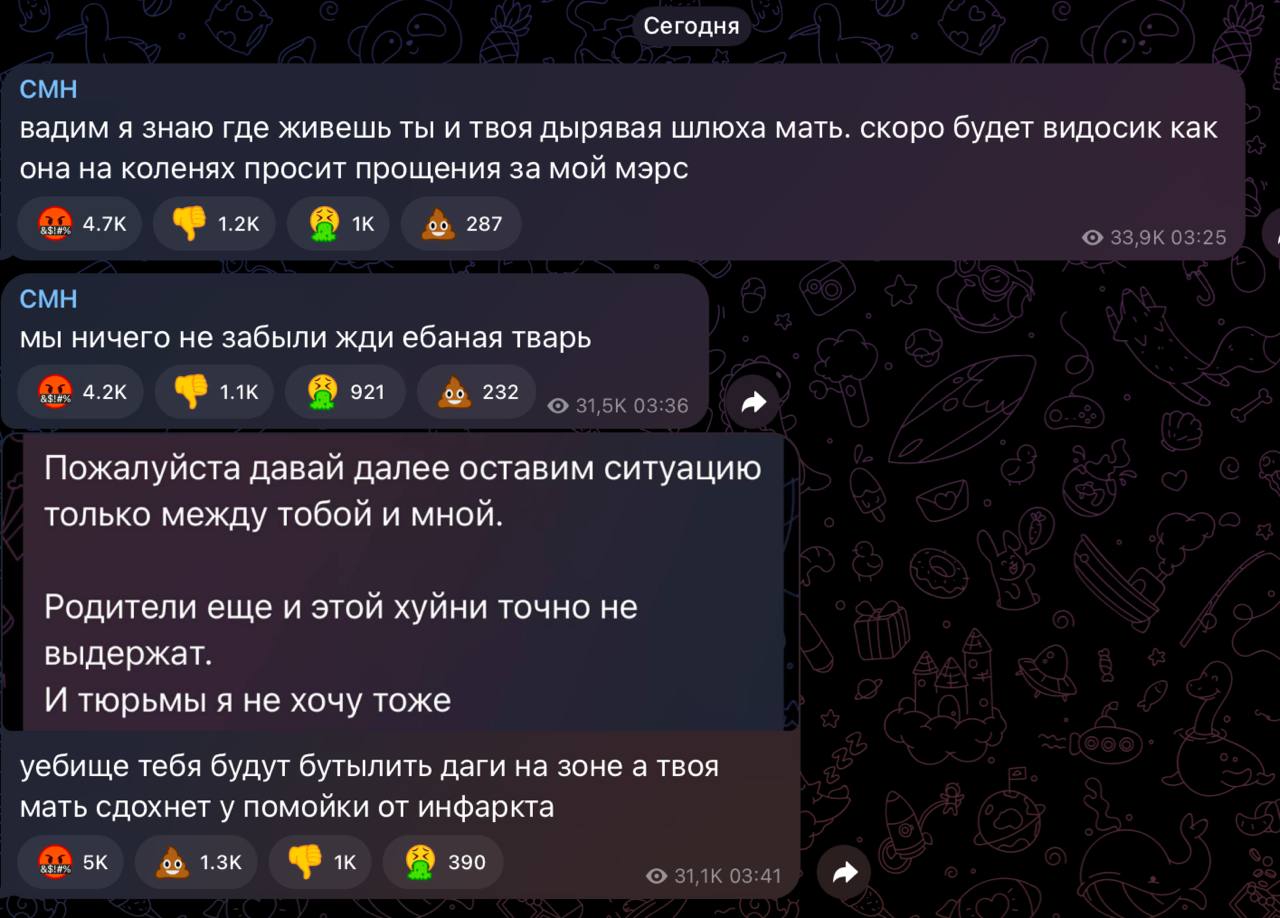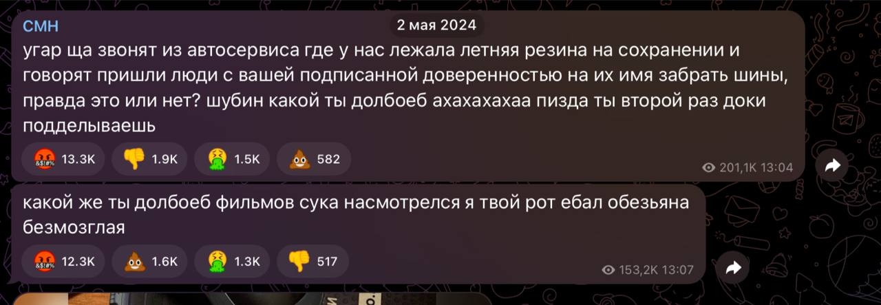 номер который выложил хряк в ТГ это номер мамы этого Шубина, которая скорее всего обычная пожилая женщина которая ни в чем не виновата. это ваще нормально? щас его хомяки будут терроризировать ее похлеще чел мать Кашина, просто пиздец
