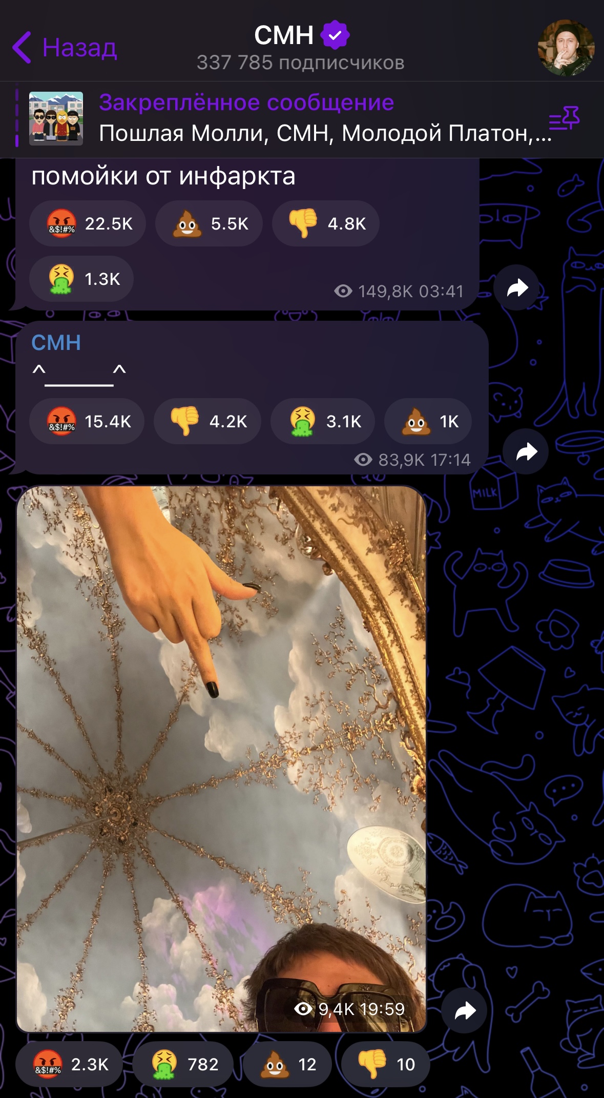 А я верю Инстасамке про историю со спотифай и педокси. Когда прочитала его старые статьи на жж про величие ашкеназов, высмеивание гоев и холокоста, поняла, что он больной ублюдок с комплексом бога, который хочет собрать возле себя что-то вроде секты. Для меня Мейби Бейби и Дора - подстилки патриархата, которые используют тему буллинга и играют в феминизм во благо своей популярности, пока сами терлись в баре 1703 в поисках питательного хуя галата и чмирона хуяновича.