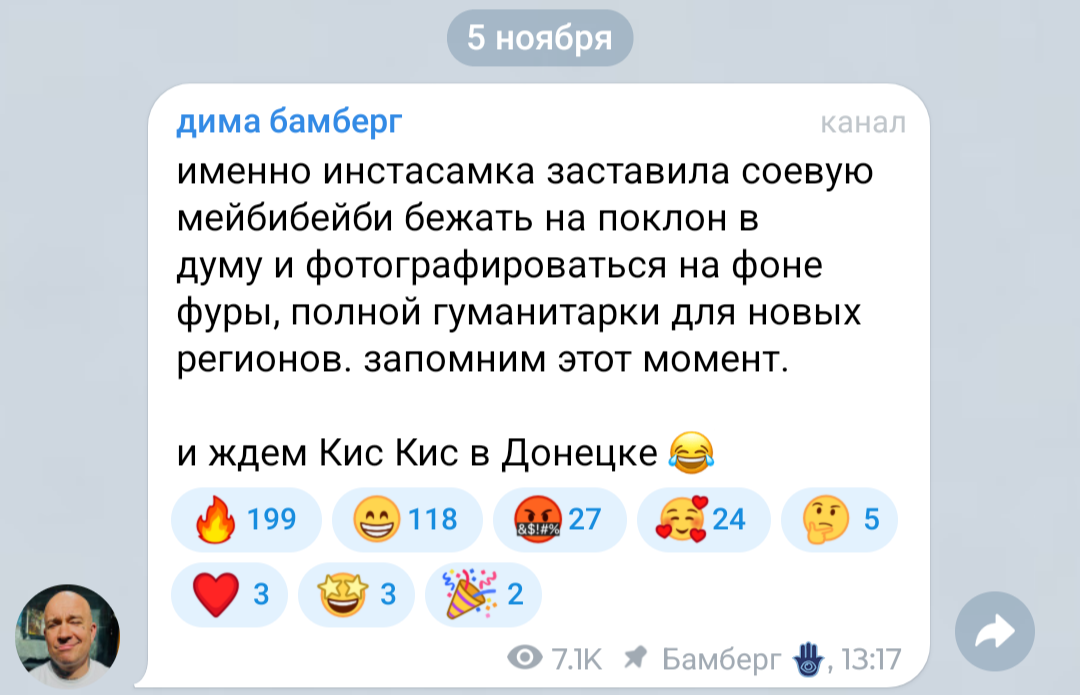 И еще смешно, что Арина жопу рвет чтоб подлизать всем и каждому во власти, а Давид до сих пор ссылку или код на реестр ркл на свой тгк не повесил))))) теперь вот мейби бейби прижали, теперь и она тусуется с ЛДПР)))))