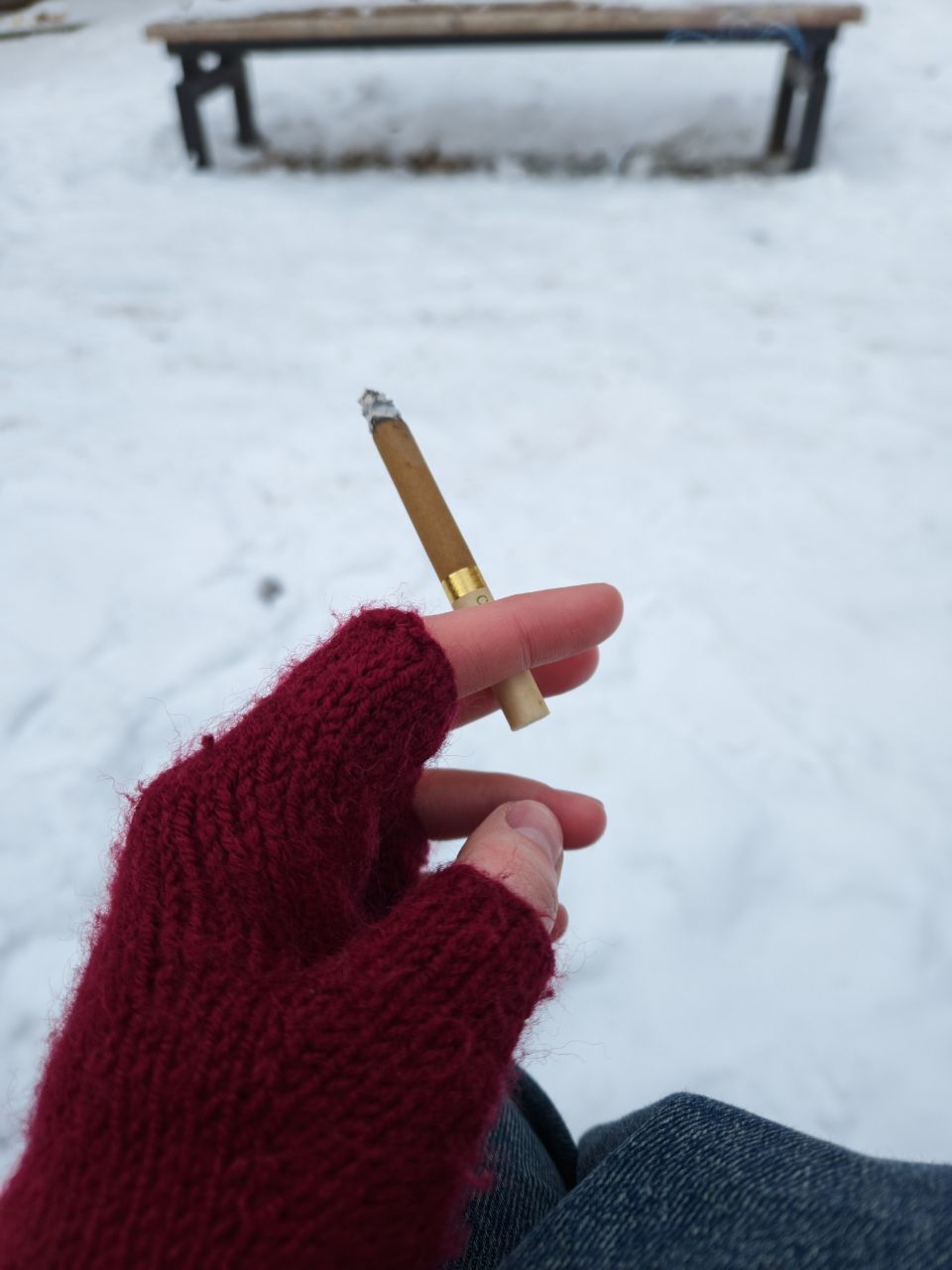 Курила сигары, курила какие-то коричневые сигареты с вишней и шоколадом. Просто короткий очень стрессовый период в жизни. Покупала сигару подороже, друг один раз с Кубы привез что-то крутое, и просто держала ее во рту, иногда попыхивая. Вредно все это, но расслабляет. Пачка сигарет дома до сих пор где-то лежит, иногда прям тянет выкурить, но отвлекаюсь и уже не вспоминаю. Курю в окно, дома никого нет, запах не волнует и даже нравится. Взрослый такой, плотный. Иногда от соседа затягивает каким-то говном в квартиру и вот это уже неприятно. На улице тоже будто не то курят, парильщиков обхожу.