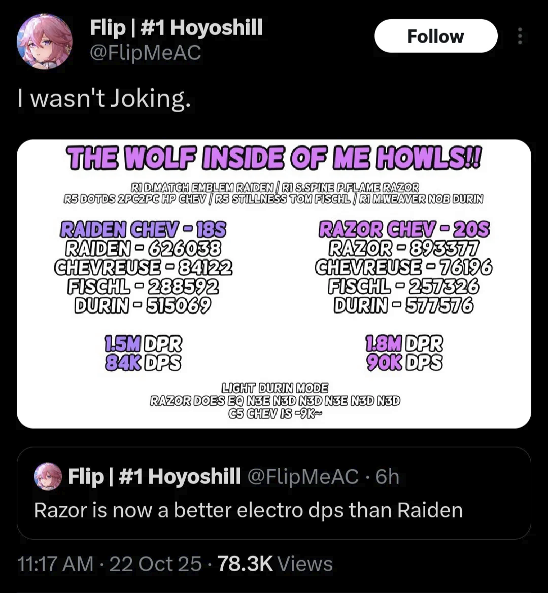 Зачем дрочить цифры в генше если это считай соло игра и соревноваться не с кем и выебываться не перед кем и никто не будет завидовать тебе и думать о том какая ты скилловая и крутая