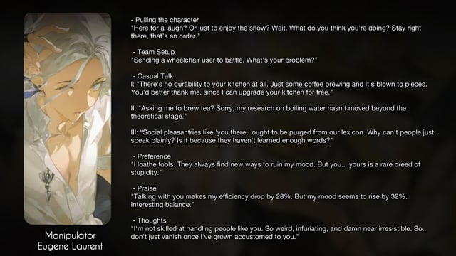 >>6320874 >она флиртует с игроком Так она со всеми флиртует. С игроком, с другими играбельными персами, с нпсами. И в моменты, когда её внутренний диалог показан, она сама с собой в том же стиле говорит. У кого-то от активных психически здоровых экстравертов почему-то зубы скрипят.