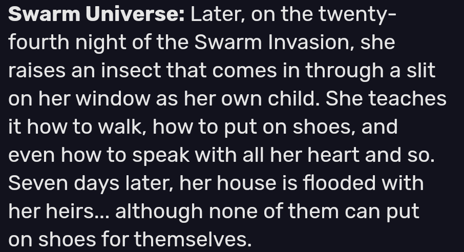 >>6323329 Мы же видели тиранидов вне виртуалки. Они бай дизайн не очень умные и на роль пс не подходят. Даже если нарисовать сисястого фансервисного жука, с минимальными жучиными элементами, нарративно ты как из зерга компаньона сделаешь?