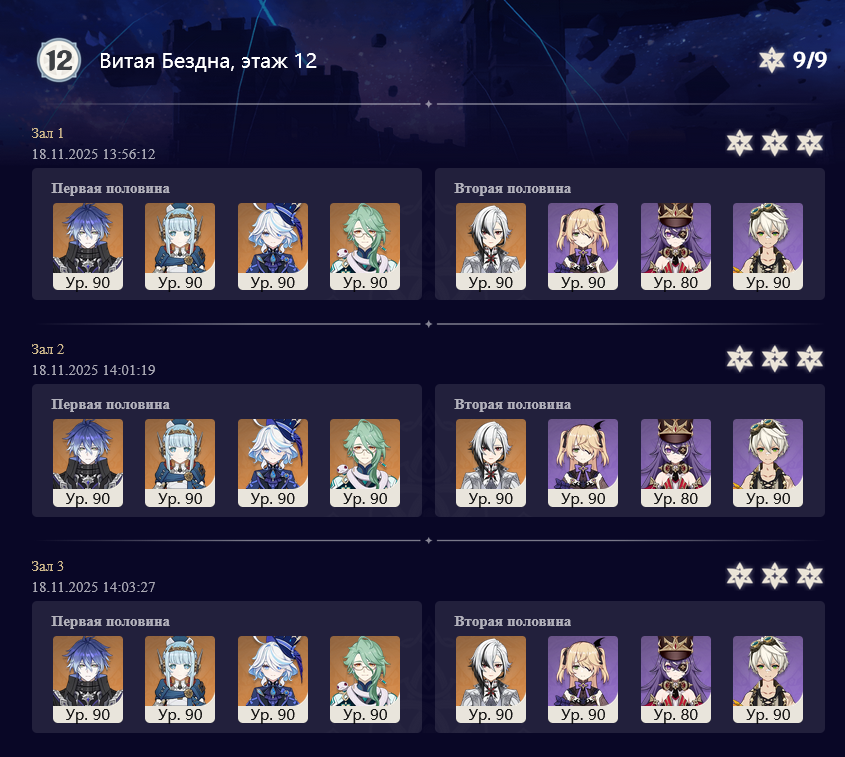 >Я в среднем ретраю по 2-3 часа театр, бездну и надриск, чтобы закрывать все по максимуму. Итого 6-9 часов. Я не виновата, что ты косорукая, у меня последние пару лет всё вышеперечисленное за одну попытку закрывается неви с2р1 с разными сапами по ситуации, теперь ещё с2р1 киря помогает, кунов мало, так что всё скопленное на них трачу. Хотя даже когда не закрывалось, я хер забивала и забирала то, что получилось, между полностью закрытым 12 этажом пездны и 3 звездами из 9 разница в гемах минимальная, а в театре и надриске её вообще нет, там гемы все поучаствовшие забирают, а остальные награды типа перьев и бутылок для артов это считай мусор.