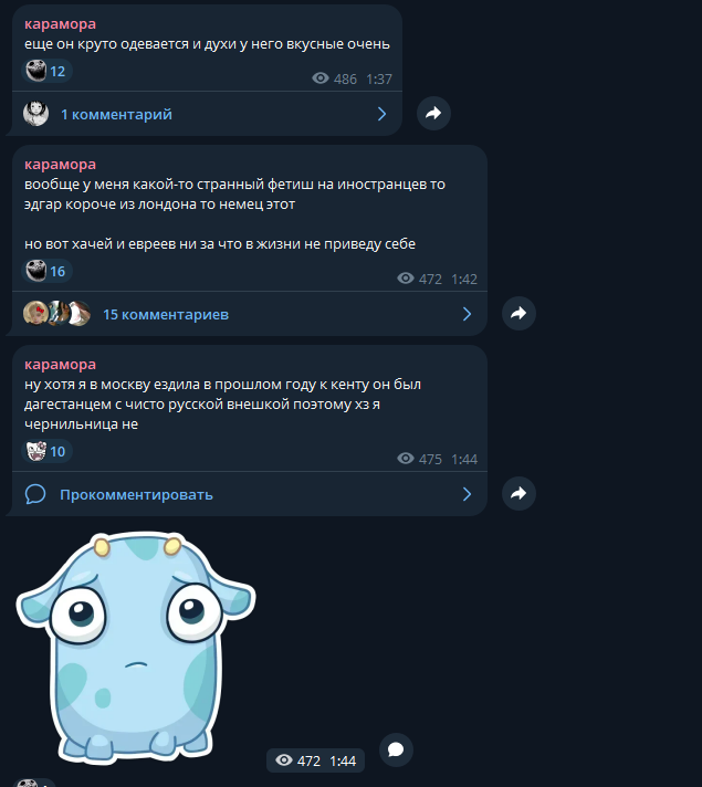 >>6320020 сеим. ладно допустим кому то прогулки этой карины интересны и досуг (хотя что тут обсасывать, никаких скандалов), но моничка тут зачем, ребенок как ребенок >>6319949 она куда страшнее марфы анфас как минимум. и она даже с луксмаксом выглядит несимпатичной, дистальница хотя бы имеет необычную внешку этим видать и берет