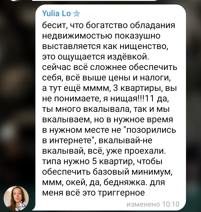 Вот у лимиты Юли нет ни личности, ни контента. А кейс жертвы гиперопеки разыграть тем более не вариант, потому что для этого нужно чего-то достичь в какой-то сфере, вырвавшись из этой гиперопеки, чтобы у аудитории складывалось мнение, что она шарит в этой теме, а не просто пиздит.