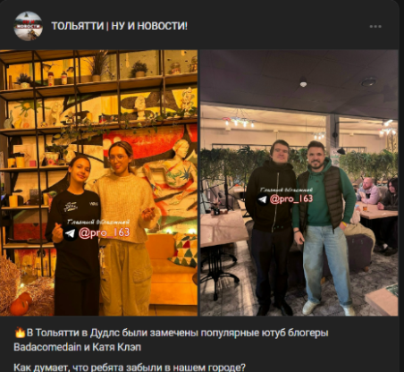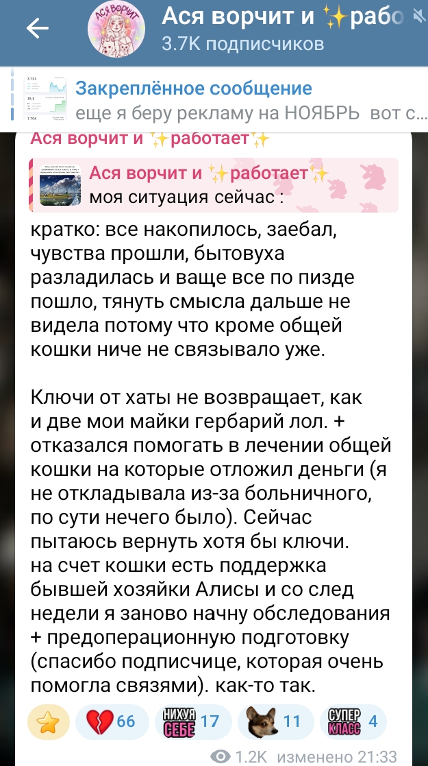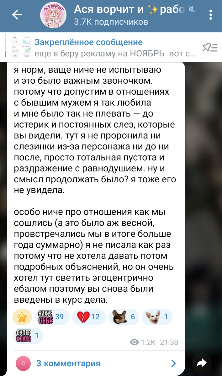 >>6320777 Мой тейк в том, что у Юли достаточно мозгов чтобы быть блогершей как она хочет. Тухлая Клэп или нет - дело десятое, интеграции/реклама/фанаты/доход без офисной работы - есть, это то, чего Юля хочет. Я Катю просто привела как пример, не самой умной девчонки которая стала известной, причем без трэша. >>6320749 Вот да, она из-за инфантильности и привычки, что за нее все делают, ленится даже прошарить какую-то нишу, взять камеру и начать снимать. Гандон С объяснял же - надо очень много снимать/пробовать разные форматы, что-то да выгорит, главное упорство и систематичность. К слову, этот алкаш очень продуктивный. >>6320686 Стать амбасадором сепарации. начать раскачивать кейс жертвы гиперопеки, стать новой нежной мамочкой, типа поддерживать подростков, постепенно выходить в какой-то новый формат.
