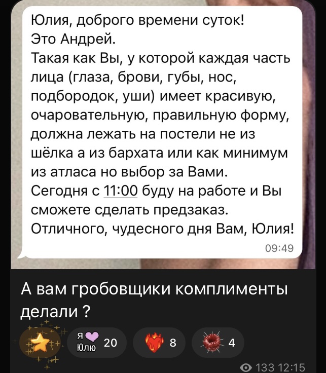 >>6318832 У меня подруга в таком бутике подрабатывала, пока училась, людей могло не быть вообще за день, при этом хозяйка за ней следила по камерам и ее заебывала намывать этот бутик весь день, тереть плинтуса лол и фоткать ей как она их протерла в углах, ходить вещи отпаривать, которые и так хорошо выглядят, если она дольше получаса сидела в телефоне или книгу читала, ей еще какое-нибудь тупое задание придумывалось, потом это место закрылось