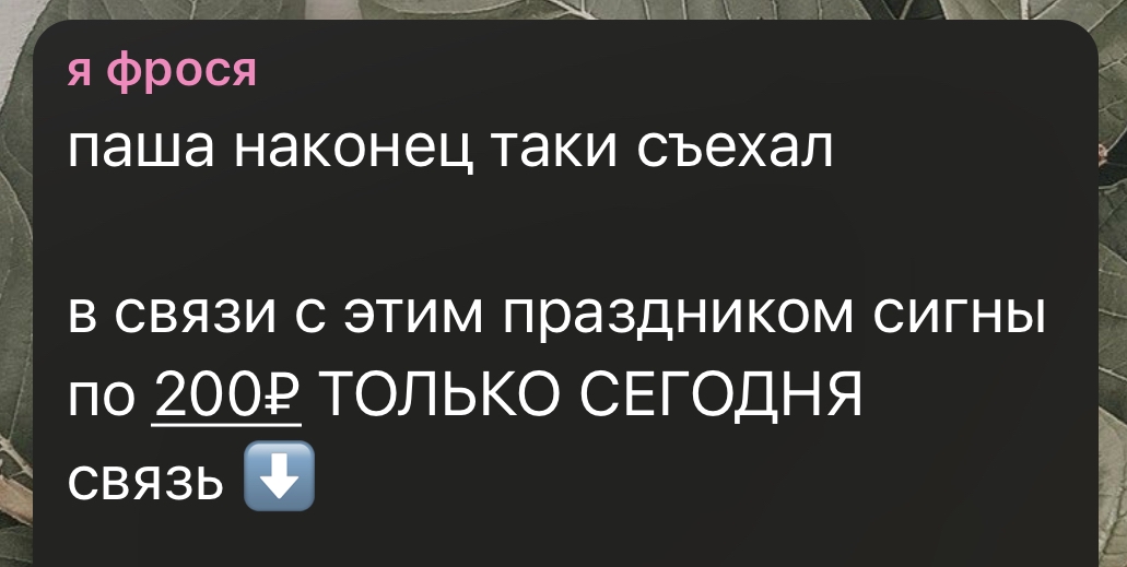 >>6321370 Кстати, заметьте как фрося радуется этому. «Наконец» съели съехал, «в честь этого праздника». Хотя сама подлизывалась к нему, кормила пирожками, покупала вкусняхи и дарила подарки. Пашок видимо чуял лицемерие и поэтому не поддавался на уловки. Выдавили ватника из соевой твиттер-коммуны.