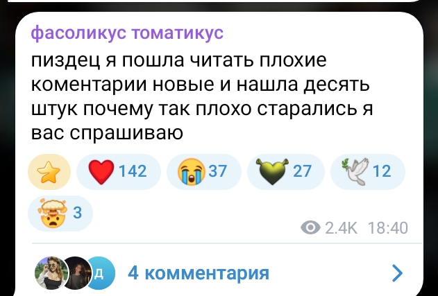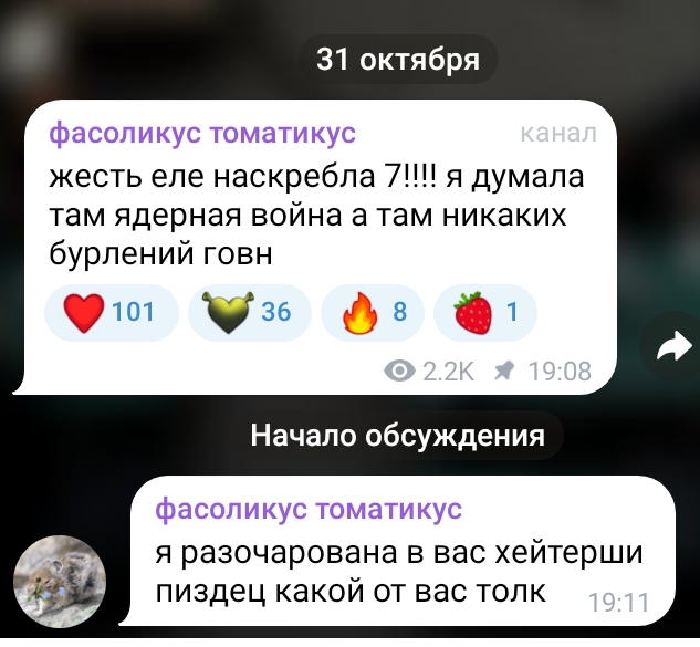 Все, крайняя стадия шизы. Уже несколько дней подряд мусолит комменты комменты давайте обсудим комменты давайте анализировать ох какие хейторы не терапевтированные, ух, давайте обсудим в очередной раз и полижем мне жопку