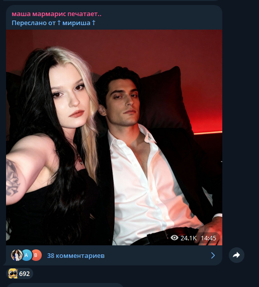 >>6327353 Так нет проблем в том, чтобы красивой девушке найти ровесника или младше. Я просто когда читала ее канал заметила, что она писала как тратит свои донаты на ремонт тачки Костяна и просит подписчиков уговорить его поехать с ней в Питер за ее счет. И это только то, что есть в канале. Я просто реально в ахуе от того какая добрая и хорошая Саша, что настолько любит парня, что готова так стараться. Предыдущие парни Саши жили с ней за ее счет, один спиздил у нее деньги, о чем у нее был целый канал. Я очень надеюсь, что Саша действительно нашла своего человека, а не очередного приживалу.