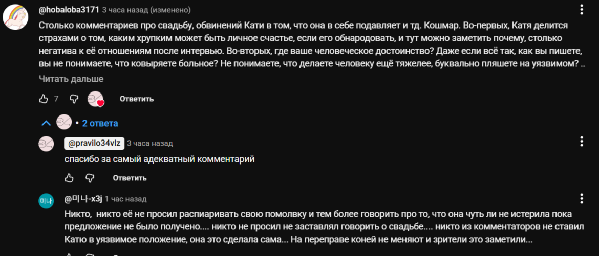 >>6325258 Буба кстати умело реагирует на хейт. Ей вот реально похуй, может чуть чуть поспорить, но она там обычно на личность комментатора не переходит, скорее защищается. Ну и вот эти консервские посылы нахуй за любую мелочь тоже отсутствуют