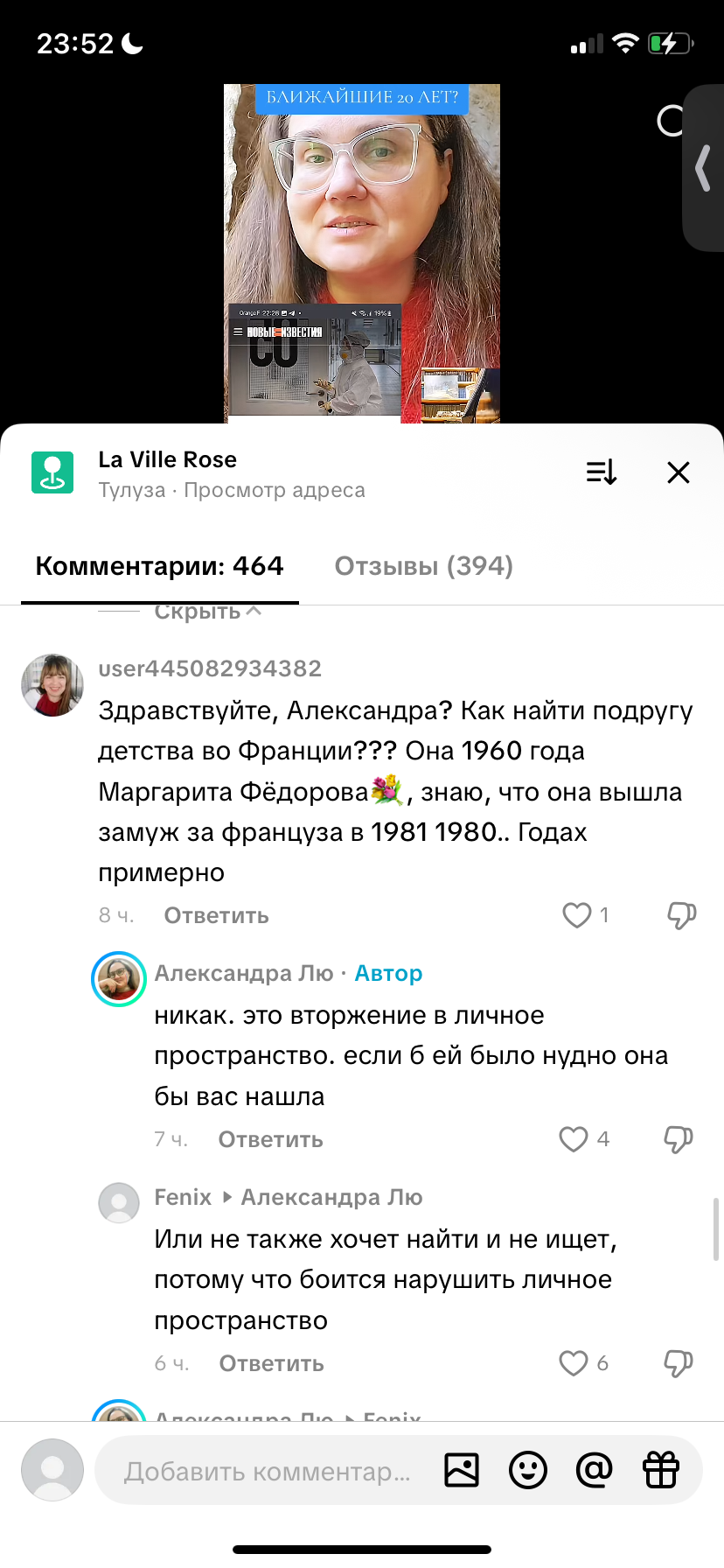 >>6328054 Она работала уборщицей в магните, но хейтеры узнали адрес, стали отзывы писать гадостные, знакомиться от ее лица с мутными мужиками и заманивать их в этот магнит, фоткали ее, кто-то даже банки с товаром разбивал, короче такие дела. Она сама далекоооо не святая, но бля, те, кто ее травят ничем не лучше