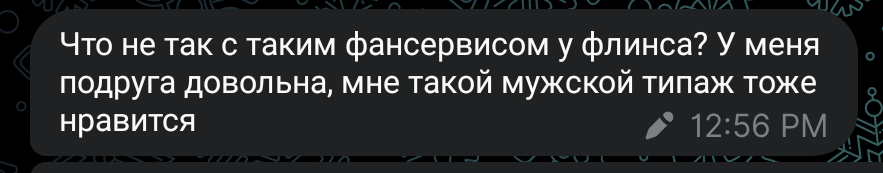 >>6363641 А что со вкусом появится? Новый контент? Я люблю умеренный ненавязчивый фансервис если что-то легкое или околоромантичное и его отсутствие, если что-то серьезное. И по памяти я могу не так много вспомнить чего угодно, где не было бы фансервиса вообще или его было бы одинаково у тян и чушей. Получается, что я на десяток лет застреваю в среднем с >+1 любимый тайтл без фансервиса >+5 тайтлов с терпимым фансервисом которые мне понравились При этом даже в этой пятерке будет что-нибудь типа знаменитого мАсс Эффекта, еще в детстве без насмотренности про который я думала А почему мне приходится смотреть на человеческие сексуальные тела у женщин, но кремниевое тело таракана Гарруса я должна полюбить чисто за его ебейшее персоналити? Не, я рада, если ты можешь игнорировать большинство чушефансервиса, потребляя что-то только ради интересующих персов, но у меня не получается лично. Да и уже не хочется терпеть его, надоело.