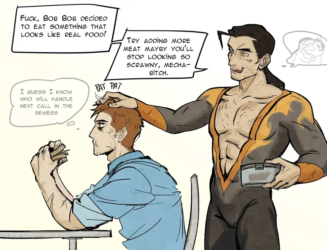 >>6370274 >мужчины тоже люди, у них есть душа, чувства, эмоции. Так они и есть. Но выражается это иначе. Вот мне вчера попался оридж про хоккеистов как раз. Читаю, вроде все норм, даже хоккейная матчасть есть, и думаю, а что ж не так-то. Потом дошло: повышена эмоциональность. Все на таком накале, как в бразильских сериалах, это утомляет. Надо было это все иначе описывать, без вот этих африканских страстей.