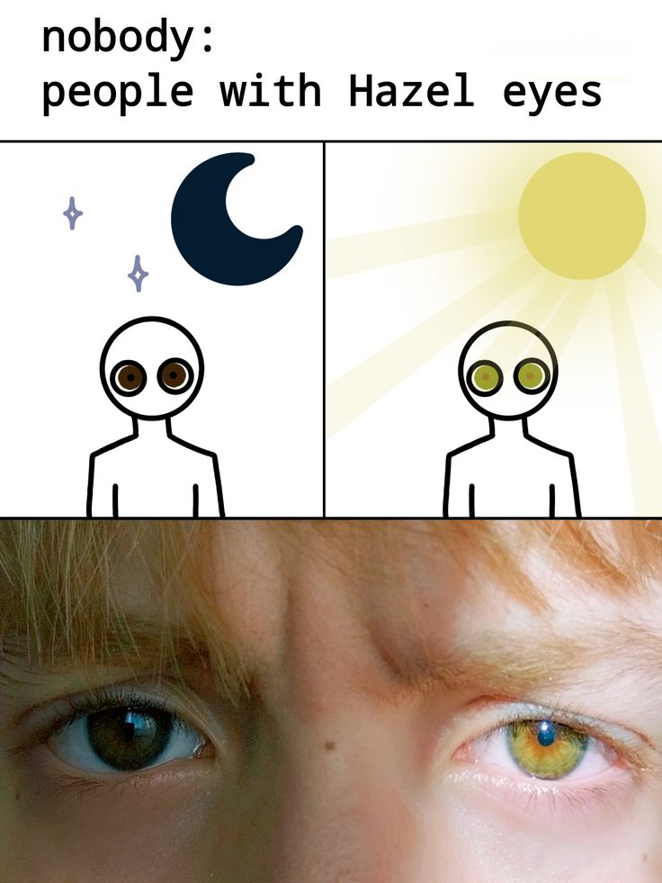 Что за даунский срач про цвет глаз опять? У всех в глазах, волосах и коже один пигмент одного цвета, это меланин, различается только интенсивность. Технически не существует никаких "голубых" и "зелёных" глаз, есть только карие глаза разной степени насыщенности, некоторые из которых выглядят как "голубые" из-за игры света. Вы хоть осознаёте, что с научной точки зрения звучите как умственно-отсталые? "Люди меньшим содержанием одного и того же пигмента в глазах уберы, а с большим унтеры, ыыы, я вместо уроков в школе и универе сидела в падике и пила пивас".
