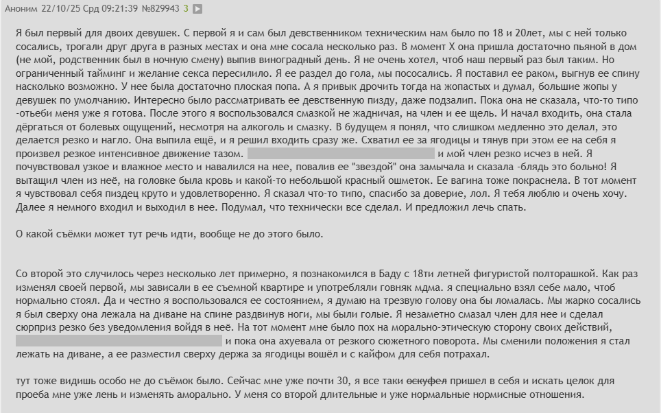 >>6365682 Типа когда он учился в школе, случайно зашёл в раздевалку к тянкам, когда они переодевались, и увидел ВАГИНУ. Учитывая, что в большинстве школ в СНГ в те времена не было душа и после физры большинство просто натягивали колготки и топали уроки, вероятность, что там сидела тянка с расставленными ногами без трусов, причем так широко, что он что-то там увидел, вероятна нулю. Кстати, колготки из-за маленьких перемен многие тоже не снимали, прям в них гоняли и сверху спортивки. А кто-то и верх не менял. У него видимо женские раздевалки как в американских фильмах представляются, где тянки выходят из душа и там голые стоят