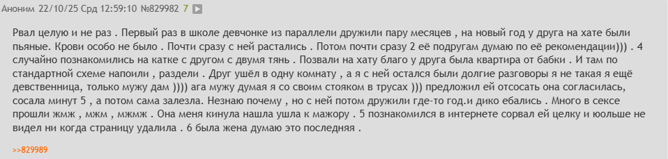 >>6365671 В фантазиях, никакого ошметка там быть не могло, чушок просто выдумал, что целка это мясная перегородка, которую надо рвать хуем, чтобы аж куски мяса разлетались