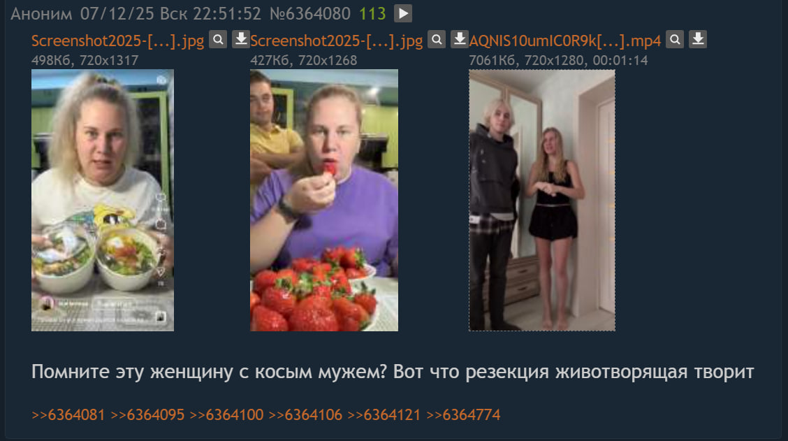 чет вспомнила двух деятельниц косплея, которых точно где-то здесь обсуждали, но я не могу вспомнить имен. мб кто-то поймет о ком я первую звали амелия или офелия, была вся больная, называла голые фотки искусством и иногда постила свою дочь, у нее имя тоже какое-то было необычное. еще рассказывала как ее не любила мать и вроде про хуевых родителей своего мужа вторая просто косплеерша, училась на швею вроде, работала на складе вб и ныла что нет денег. потом помню она каналы чистила и удаляла, тк всплыла запись вебкам стрима ее подруги, где она тоже была мне ж не могли такие персонажи присниться???