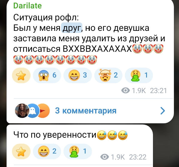 >>6367832 А вот тут поддержу её. Не всегда дело в том, что ты вся такая пикми-нпс бесишь нормальных девушек. Я замечала такую тенденцию, что некоторые девушки заставляют своих парней прерывать общение с конвенционально красивыми девушками, отписываться, удалять из друзей и т.д. Тут уже реально вопрос к их самооценке. У меня тоже такое было - ревнивая девушка моего друга попросила его удалить меня из друзей, потому что ей что-то показалось. Спойлер: он кинул мне заявку в друзья как только они расстались. Причём на моей страничке нет фоток в купальнике и эротишных фоточек тоже.