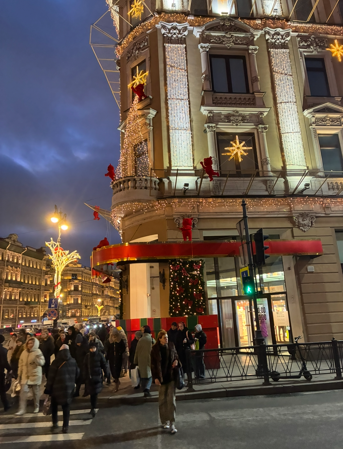 А) в Питере ебучие зелёные газоны посреди декабря. Пару дней заморозков, дальше опять плюсовая температура. На фоне серых домов и серого неба все эти украшения и гирлянды не справляются, вайб не создаётся. Зима со снегом видимо уже что-то далёкое и из детства...