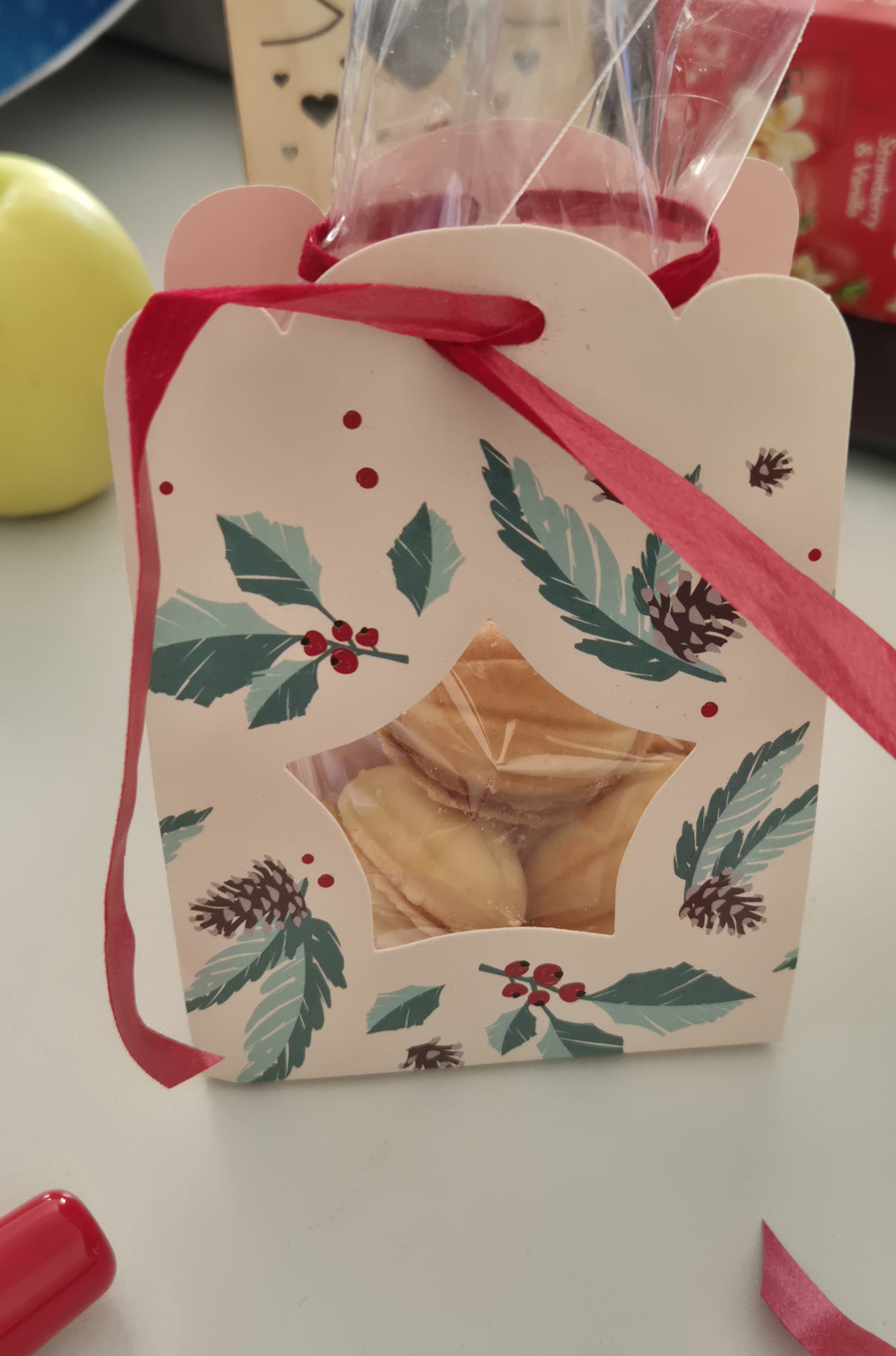 У меня есть коллега, мы не общаемся только привет/пока, она подарила всем, включая меня на рождество маленькие пакетики с домашними орешками со сгущенкой возможно стоит уточнить, что мы не в рф, но она по случайности тоже русская по происхождению, короче здесь такое не купить