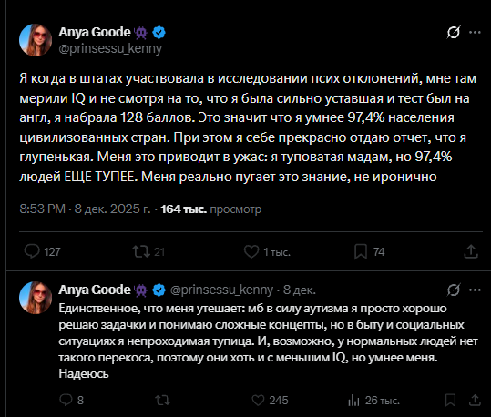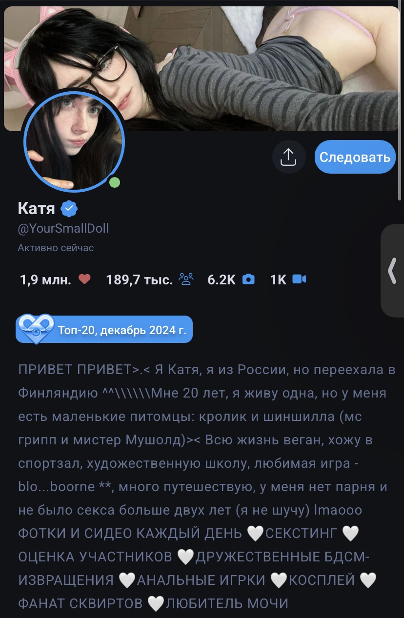 До меня наконец-то дошло... Это же дефолтная нитакуся милениаха подписчица ларина из 2011го. Просто из-за наркотиков, у нее мозг повредился и она навсегда ментально застряла там.