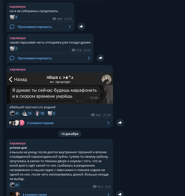 А помните как муреначерши не верили в прл Даши каплан, потому что она не показывала справку? Теперь в муреначе тебя называют чушком, если ты сомневаешься в том, что тиктокеры снимающие на камеру свои нервные срывы страдают чем-то кроме вниманиеблядства