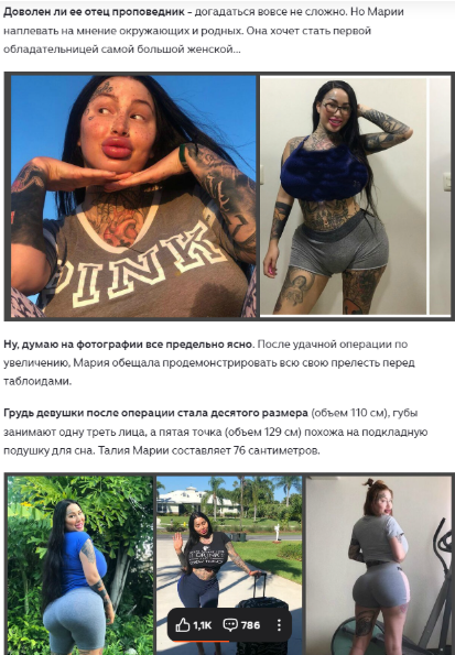 >Мексиканскую модель Марию Магдалину нашли мертвой под окнами отеля в Таиланде, в котором она проживала последние месяцы. В Сети ее называли «живой надувной куклой» — всё потому, что она переделала себя полностью. Почему вечный пиздец именно с дочками из религиозных семей.