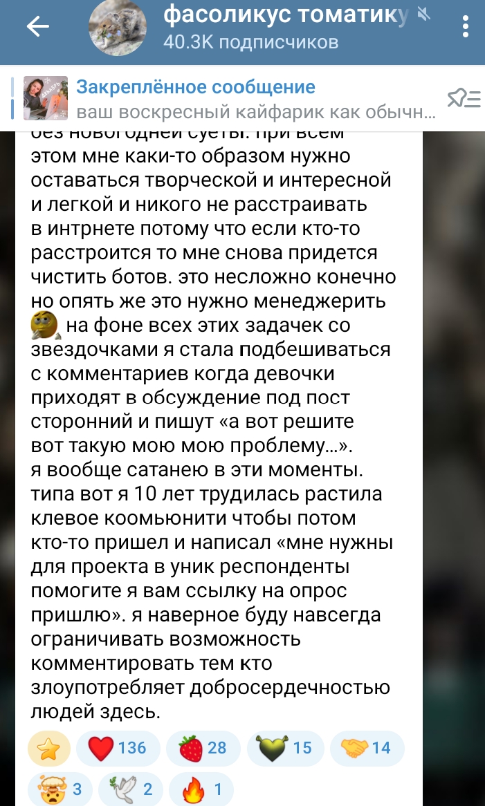 Консерва никогда не разочаровывает. Стабильно держит уровень говна. Теперь подписота не может попросить о маленькой просьбе, самая главная страдалица даже с этого сгорает. Человек хочет детей, напоминаю