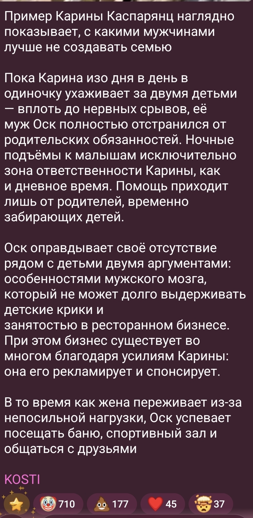 >6383126 Хз, сиса, я любила своего куна, установила норм отношения с его матерью, она поначалу казалась абсолютно адекватной женщиной и ко мне хорошо относилась, так, что я ей даже все свои секретики слила (дура). А потом пришлось некоторое время пожить у родителей куна, и там вскрылось патологическое накопительство, мощнейшее ПРЛ (я за него не сильно шарю, но не особо адекватно то реветь, то через 10 минут шутки шутить, то срываться на всех, менять своё мнение по 1000 раз и все это для женщины 55+), пиздосрадания по совку и попытки навязать нам "правильную" жизнь, вмешивалась в наши ссоры, давила на больное типа случайно (например, я делала аборт, о чем она знала, а потом, когда гг фильма его сделала, говорила, что осуждает аборты и ребенка всегда надо сохранить, хотя тогда сказала мне, что это норма для женщины выбирать, т.к. рожать ей), и т.д. Но больше всего охуение вызвало то, что она начала вести себя с моим куном, будто он грудной ребёнок, сюсюкаться, спрашивать "ты покушал/покакал?", он почему-то это не пресекал, объясняя это тем, что до этого периода ей вообще было на него похуй, а сейчас ощущает это как внимание, которого не хватало. Вообще, я замечала её такое отношение к старшему, но думала, это как благодарность, т.к. много денег семье даёт. Ну потом она начала изживать меня своими психами, что ей не нравится, что я там, по итогу, выгнала. Я пыталась промыть куна, чтобы он после такого с ней не контачил, он лишь сказал, что разочарован в ней как в личности, но общаться продолжил, и ещё и создавать нам с ней точки пересечения. Она вообще забыла эту ситуацию, будто её и не было, не извинялась за тот инцидент и, наверное, считает, что мы обе "как женщины" из-за гормонов повздорили. Кстати она знала, что у меня родители алкаши, и мне придётся вернуться туда, хотя все жалела меня и плакала, как так можно с детьми. Куна я не бросила и мы уже давно хорошо живём, но не могу отделаться от того, что его образ в моей голове закрепился как"неудачник" и "маменькин сынок". Из-за этого и у меня стали происходить заскоки, то люблю его, то чувствую омерзение и предательство. Просто хочется, чтобы эта хуйня забылась и осталась в прошлом, но меня это изводит уже второй гол, что аж здоровье посыпалось.