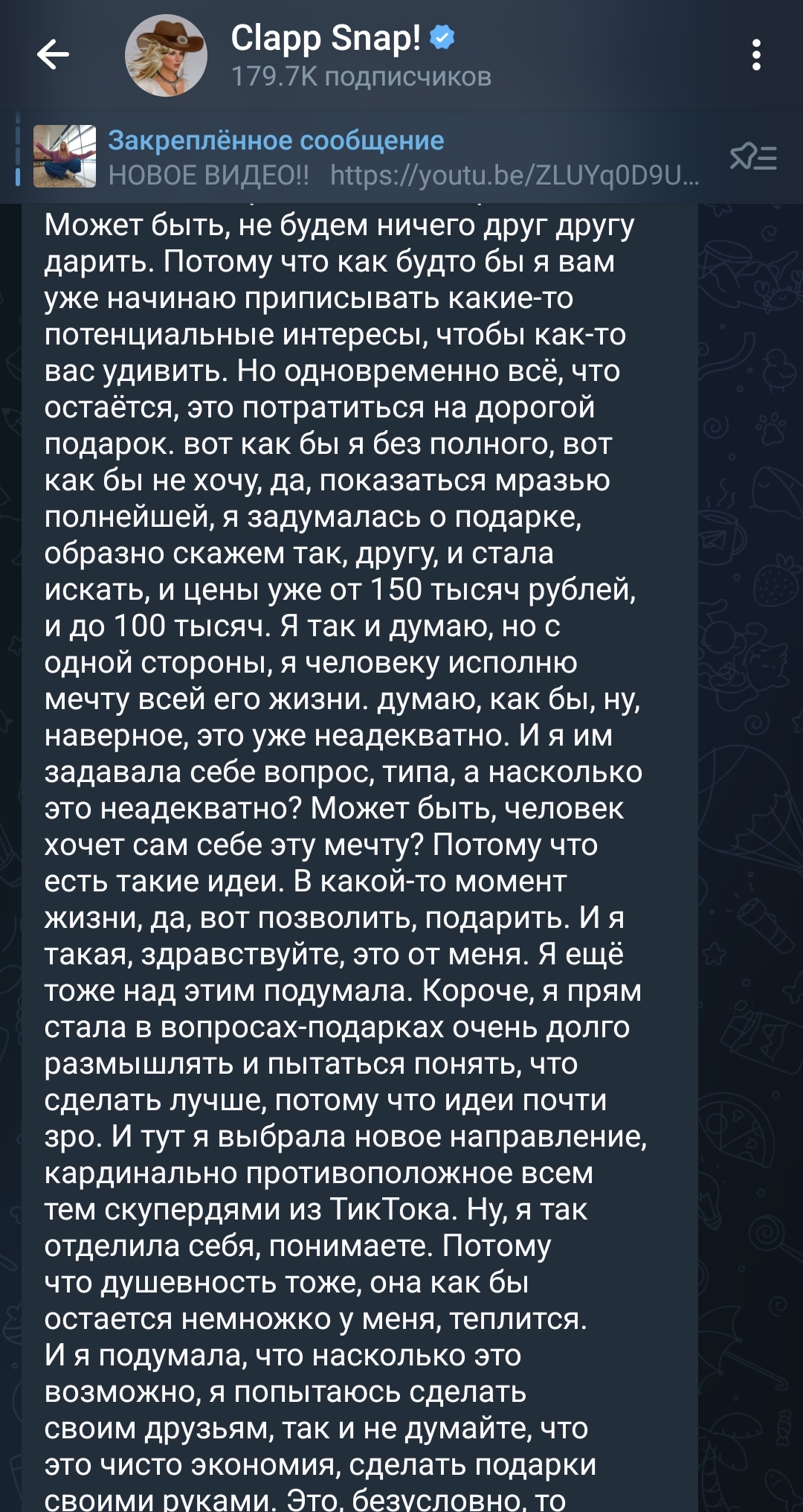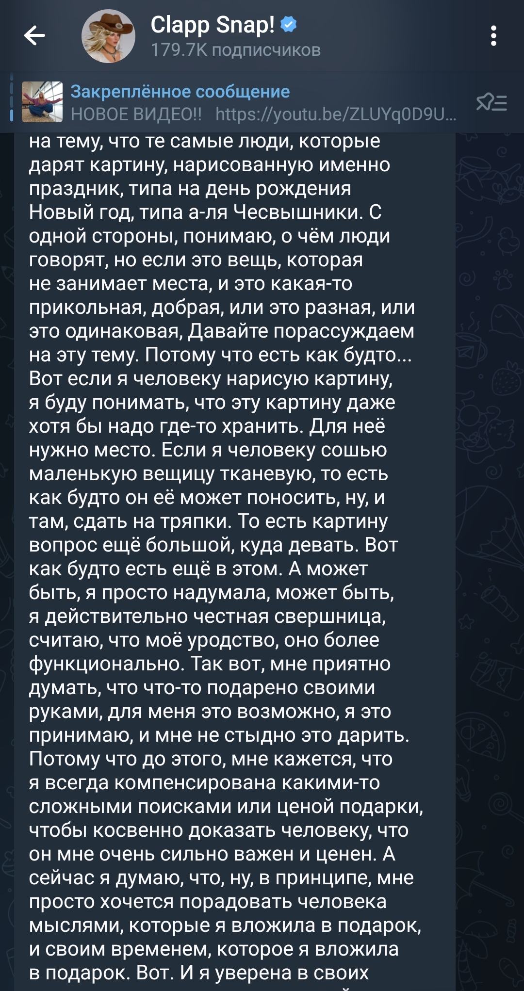 >>6380002 >Мне ни то ни то не дарили лол, ну телефон дарили Мне дарили подарки до 300к суммарно, так скажем. Но я изначально жестко фильтрую по жадности. Я сама анальница, мне сверху этого не надо.